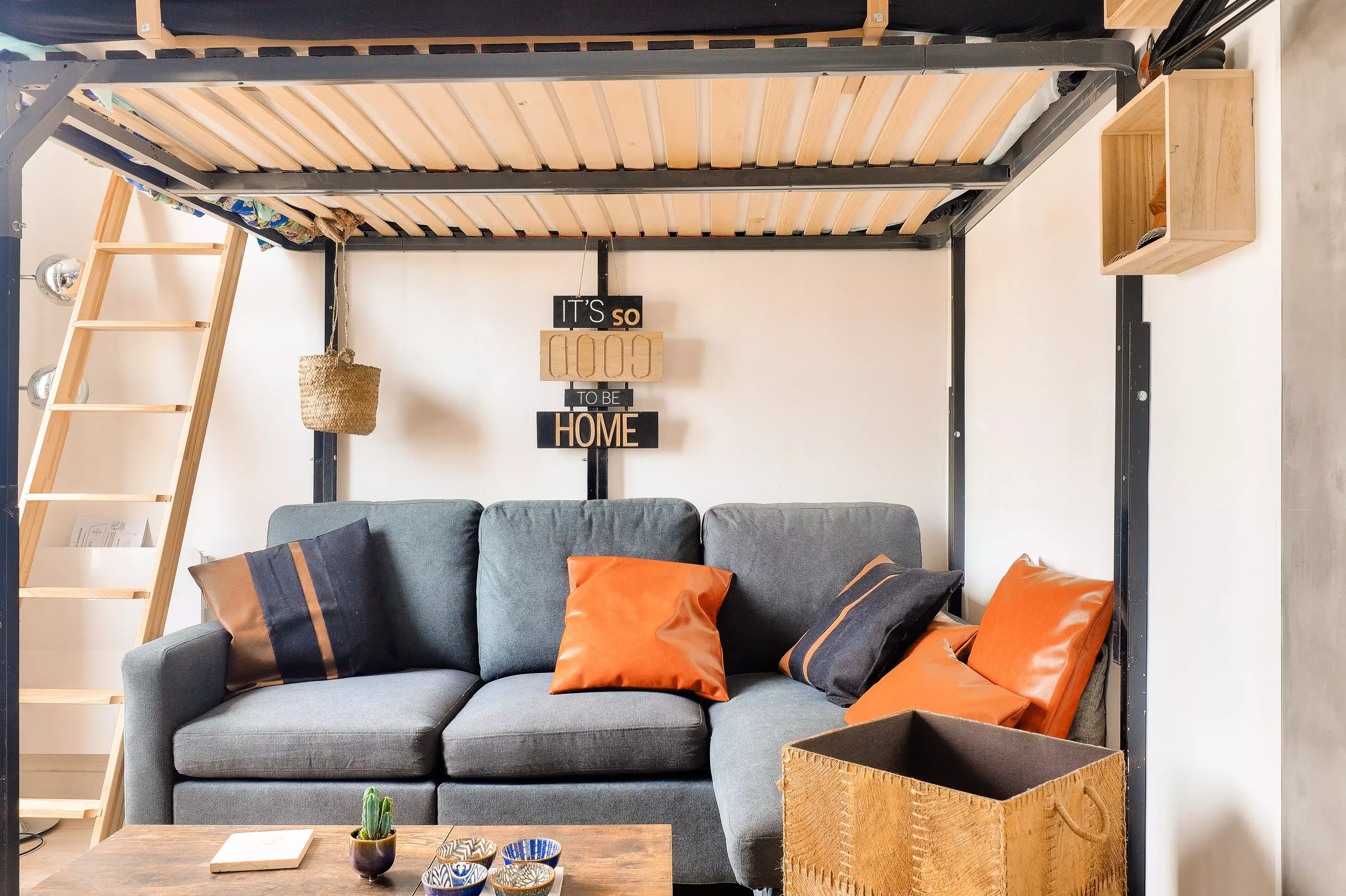 Living room composition: 1 sofa bed, 1 sofa bed.