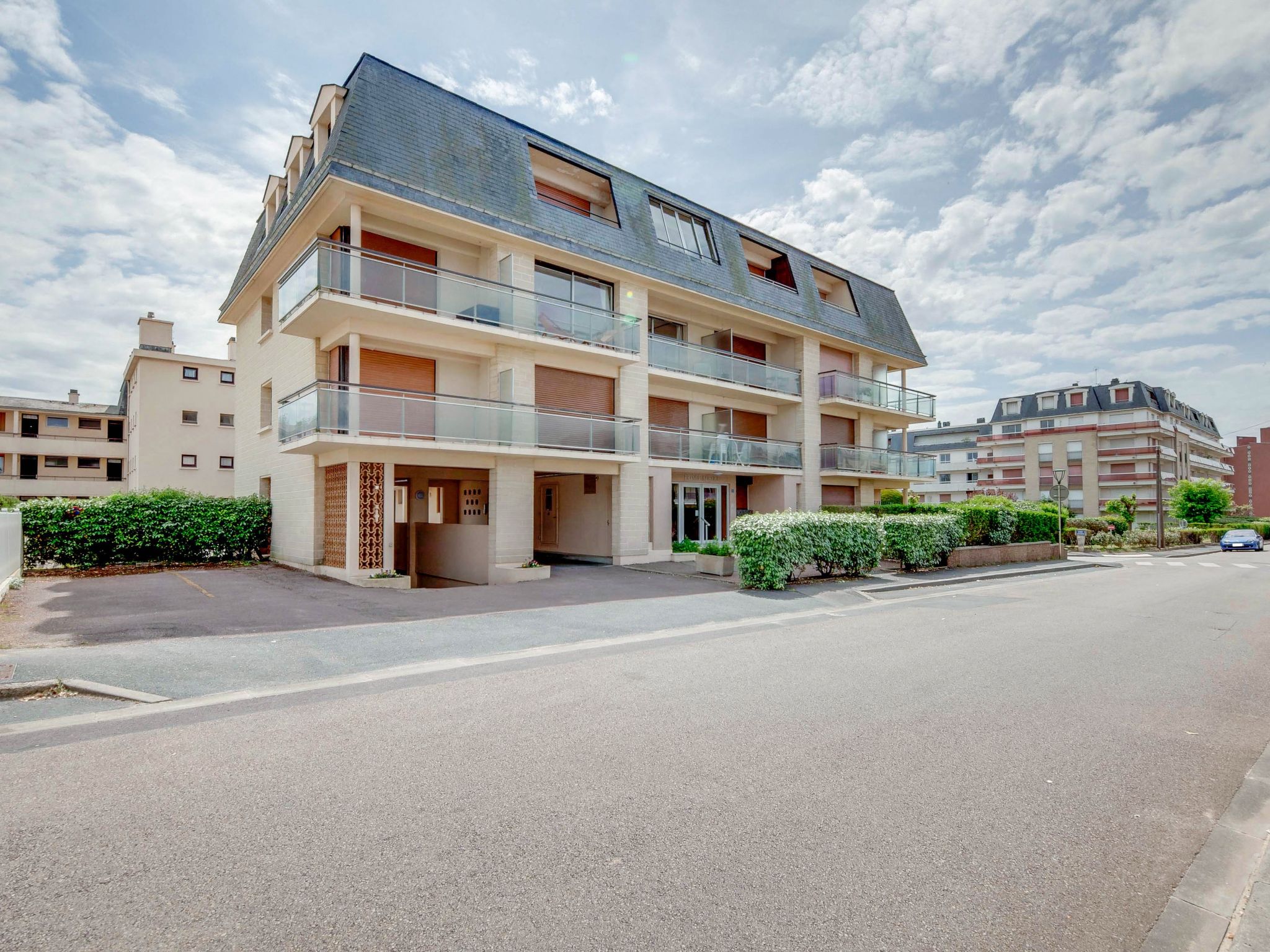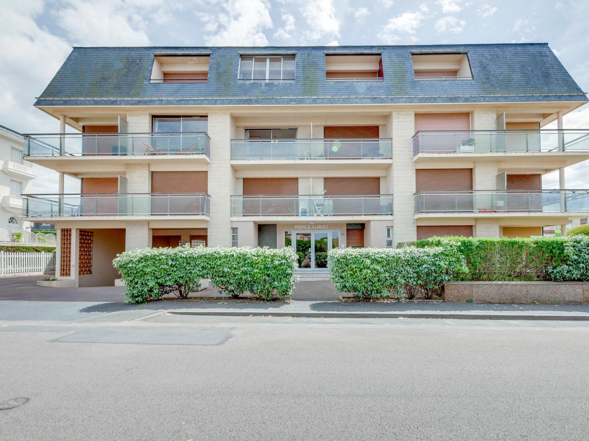 Residence "Prince Albert", 3 storeys. In the resort 600 m from the centre of Cabourg, 50 m from the sea, 50 m from the beach. In the house: lift, central heating system. Public parking on the road. Shop 600 m, supermarket 1.5 km, restaurant 300 m, bus stop "Plage" 700 m, thermal baths "Thalazur" 800 m. Golf course (9 hole) 1.9 km.
