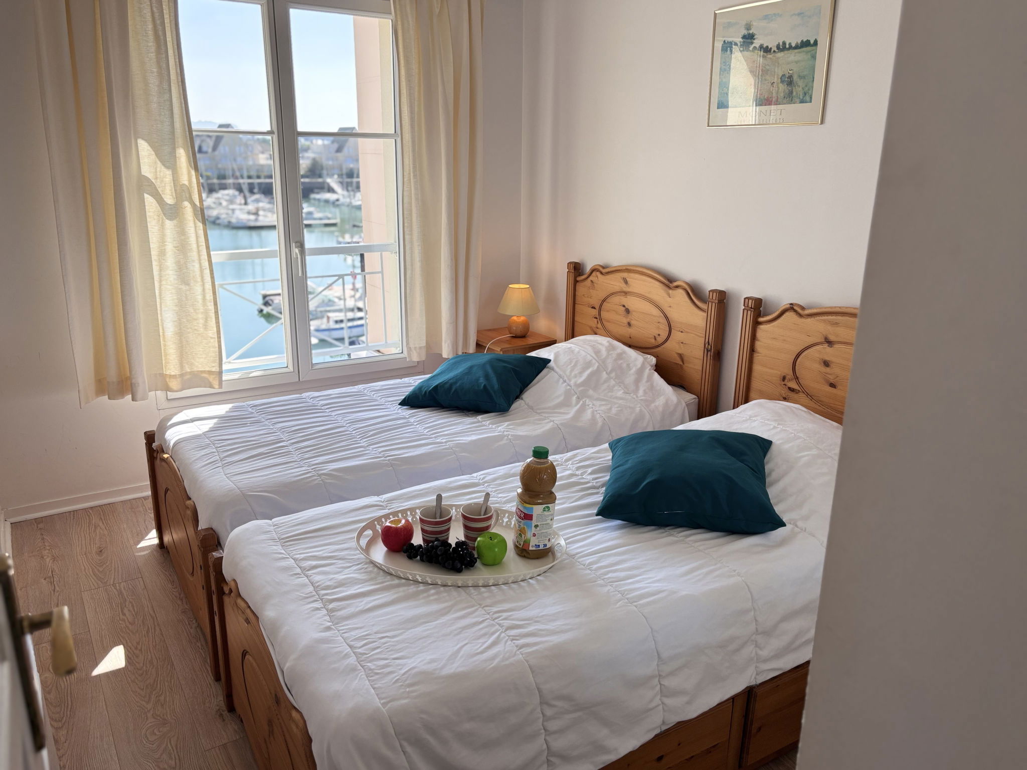 3-room apartment 52 m2 on 2nd floor, south-east facing position. Living/dining room with 1 double sofabed (130 cm, length 190 cm), TV (flat screen), radio, CD-player and DVD. Exit to the balcony. 1 room with 2 beds (90 cm, length 190 cm). 1 room with 1 french bed (140 cm, length 190 cm). Kitchenette (oven, dishwasher, 4 ceramic glass hob hotplates, toaster, microwave, electric coffee machine, raclette grill). Bathroom, sep. WC. Electric heating. 2 balconies. Balcony furniture. Very beautiful view of the port. Facilities: washing machine, safe, iron, hair dryer. Internet (WiFi, free). Parking space n 7017 (roofed). Please note: smoke alarm.
