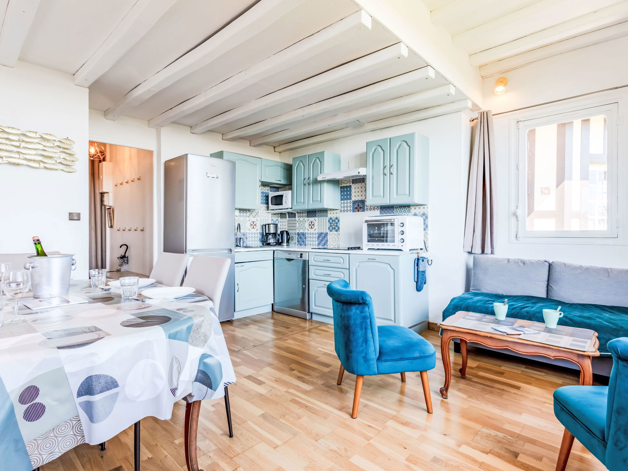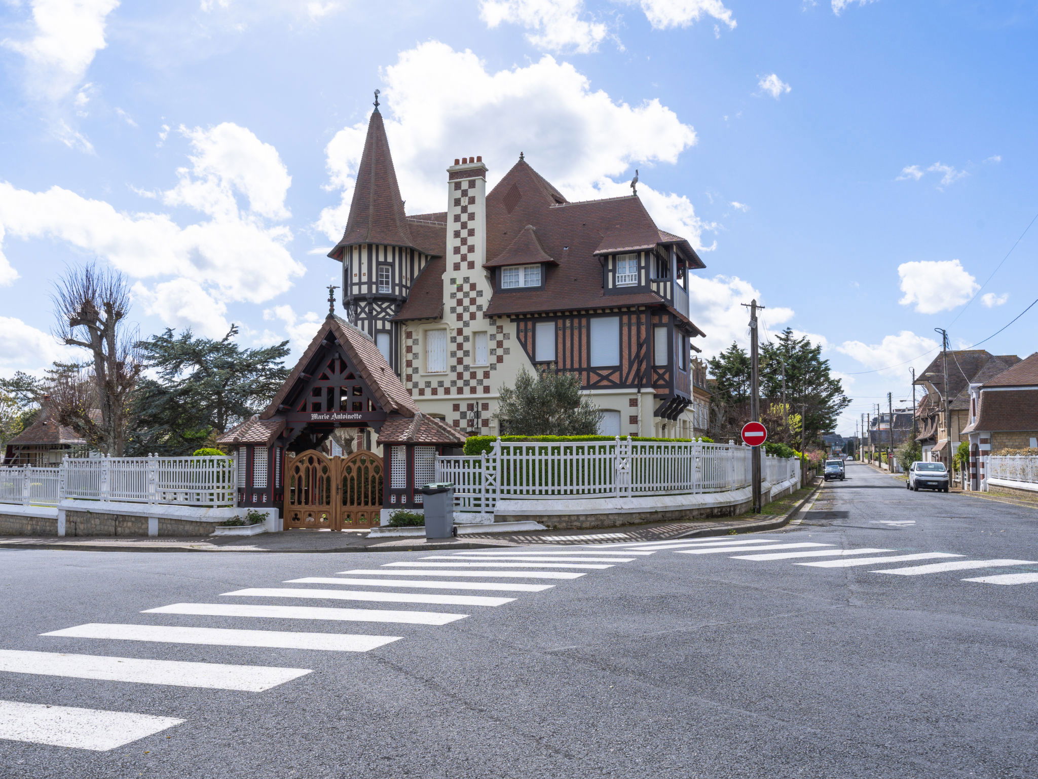 Residence "Marie Antoinette", 2 storeys. In the centre of Cabourg, in the resort, 200 m from the sea, 200 m from the beach. Public parking on the road. Shop 200 m, supermarket 1.7 km, restaurant 200 m, bus stop "Hôtel de Ville" 900 m, thermal baths "Thalazur" 900 m. Golf course (9 hole) 1.8 km. Please note: no lift.