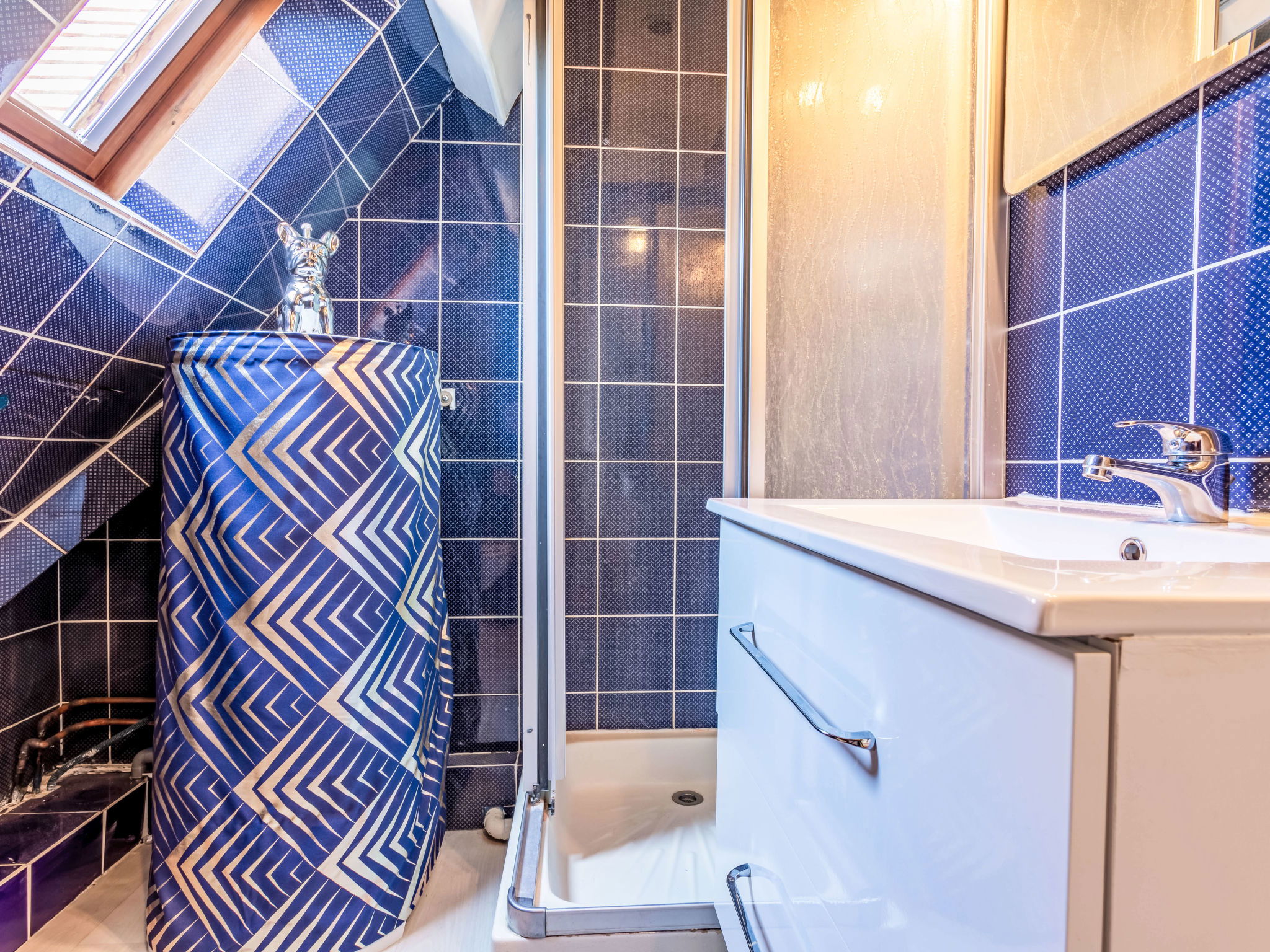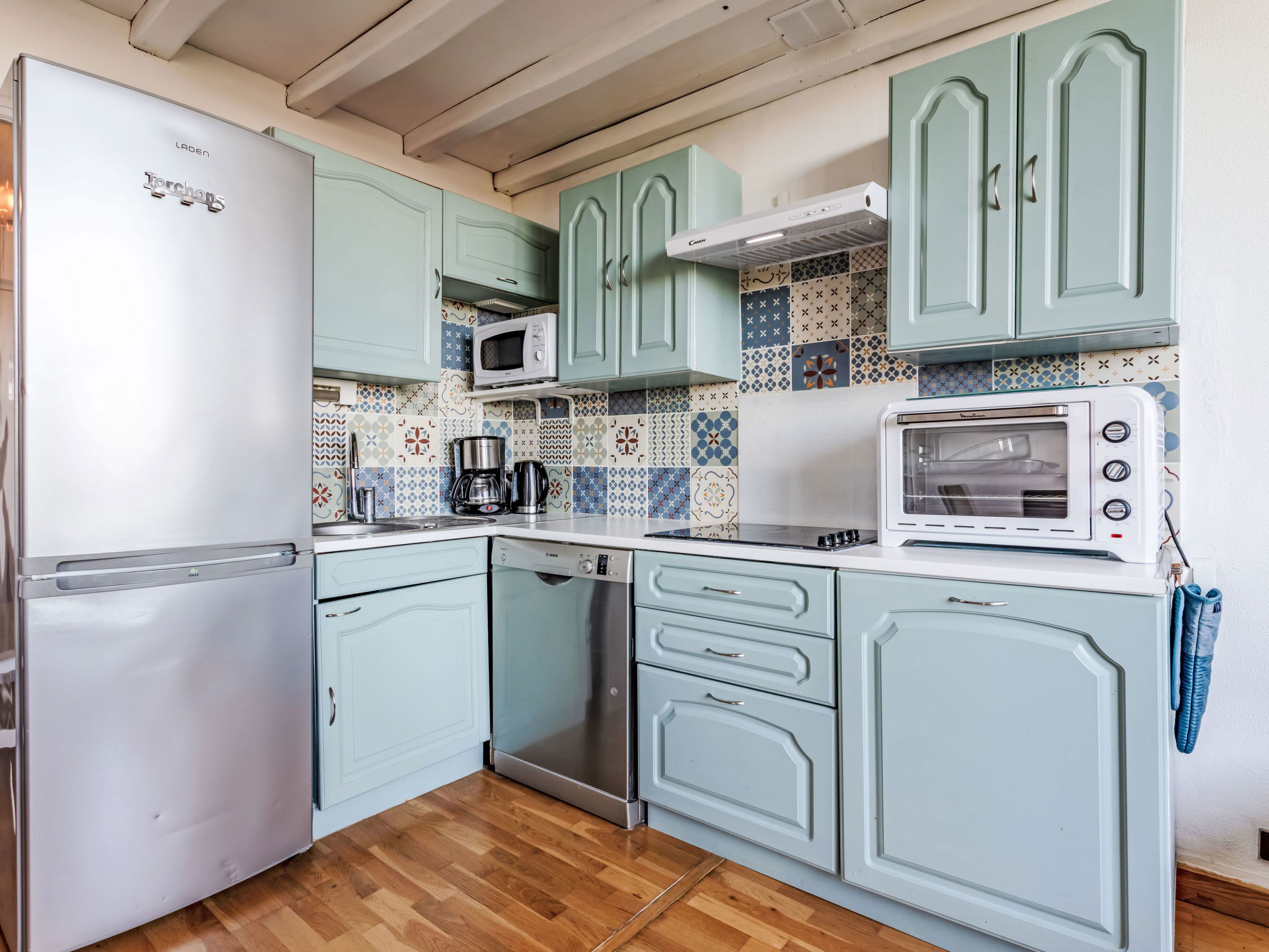 3-room maisonette 44 m2 on 2nd floor. Living/dining room with 1 sofabed and TV (flat screen). Kitchenette (4 hot plates, mini-oven, dishwasher, toaster, kettle, microwave, freezer, electric coffee machine). Sep. WC. Upper floor: (spiral staircase), 1 room with sloping ceilings with 1 french bed (140 cm, length 190 cm). 1 room with sloping ceilings with 2 beds (90 cm, length 190 cm). Shower/WC. Electric heating, boiler. Parquet floors. View of the countryside. Facilities: hair dryer. Internet (WiFi, extra). Please note: smoke alarm.