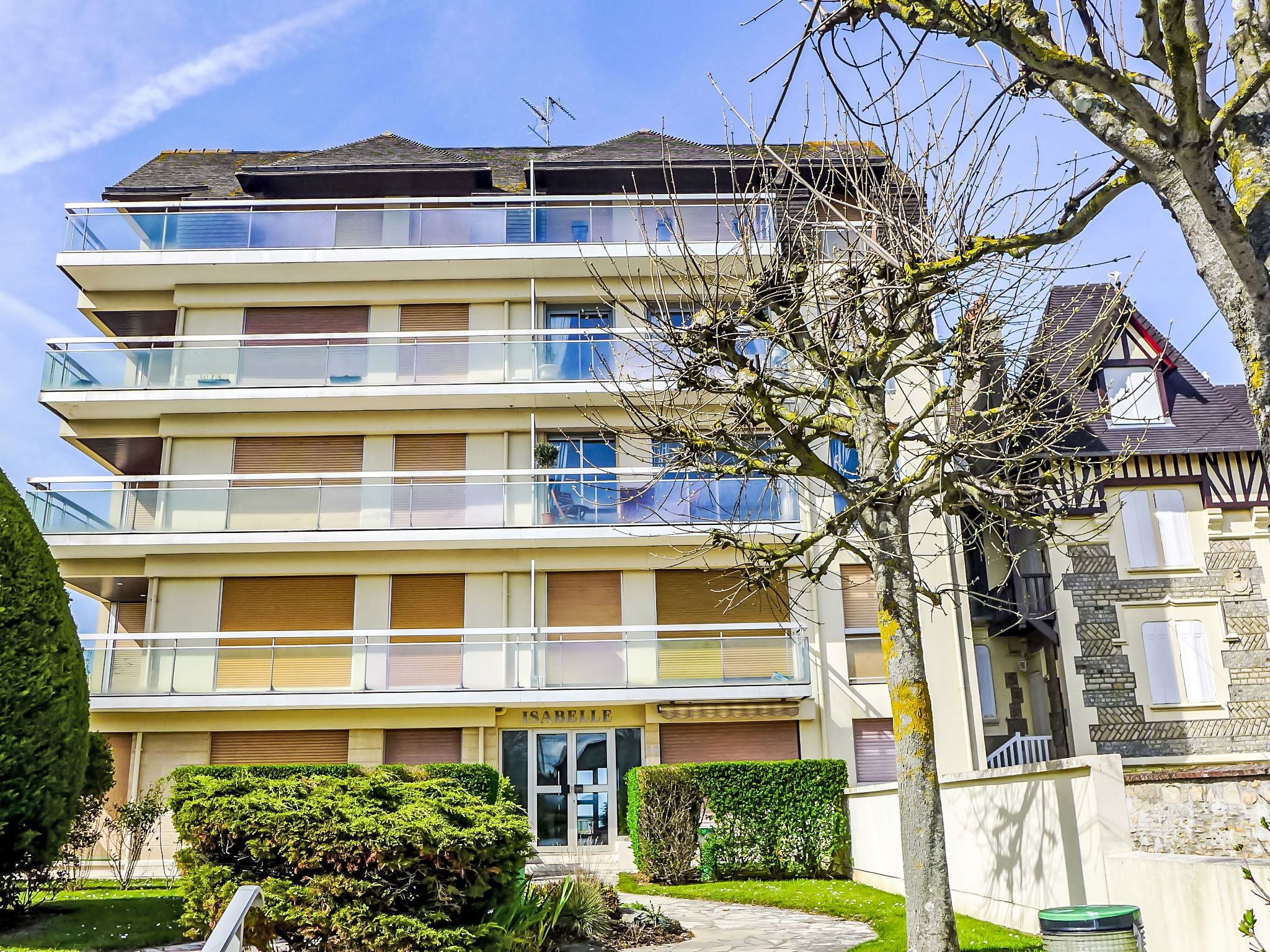 Residence 5 storeys. In the resort 300 m from the centre of Cabourg, from the sea, 20 m from the beach. Shop 300 m, supermarket 1.5 km, restaurant 300 m, bus stop "Hôtel de Ville" 1 km, thermal baths "Thalazur" 1 km. Golf course (9 hole) 1.9 km. Nearby attractions: Casino 300 m.