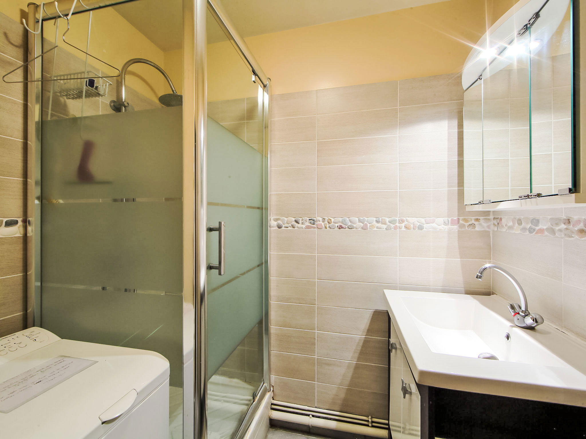2-room apartment 36 m2, on the ground floor, south facing position. Living/dining room with 1 double sofabed (160 cm, length 200 cm), TV (flat screen), hi-fi system and DVD. Exit to the garden, to the terrace. 1 room with 1 french bed (140 cm, length 190 cm). Kitchenette (mini-oven, dishwasher, 2 ceramic glass hob hotplates, toaster, kettle, electric coffee machine) with bar. Shower, sep. WC. Electric heating, boiler. Terrace 5 m2, garden 60 m2. Terrace furniture. Facilities: washing machine, iron. Internet (WiFi, extra). Please note: smoke alarm. Please note : guests have to walk upstairs (1st floor) to reach the Building C. The property is near a school.