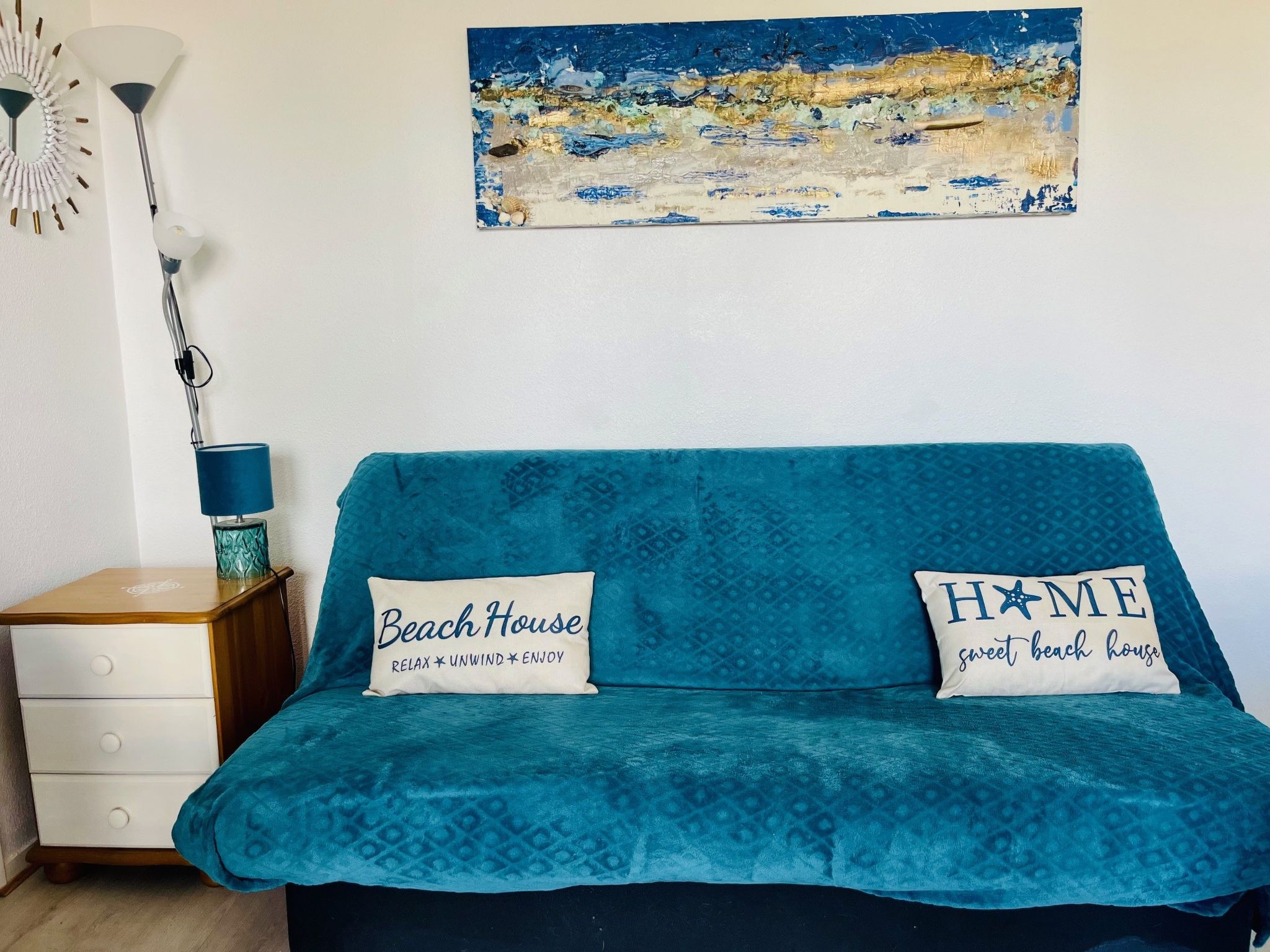 2-room apartment 28 m2 on 2nd floor, south-west facing position. Living/dining room with 1 double sofabed (130 cm, length 190 cm), TV (flat screen). Exit to the balcony. 1 room with 1 french bed (140 cm, length 190 cm). Kitchenette (4 ceramic glass hob hotplates, toaster, kettle, electric coffee machine, combination microwave). Bathroom, sep. WC. Electric heating. Parquet floors. Balcony 7 m2. Balcony furniture, deck chairs (2). Facilities: iron. Internet (WiFi, extra). Reserved parking space n 235. Please note: maximum 1 pet/ dog allowed. Smoke alarm.