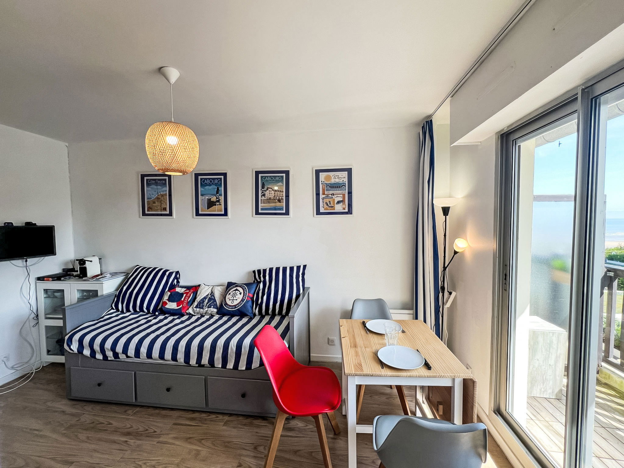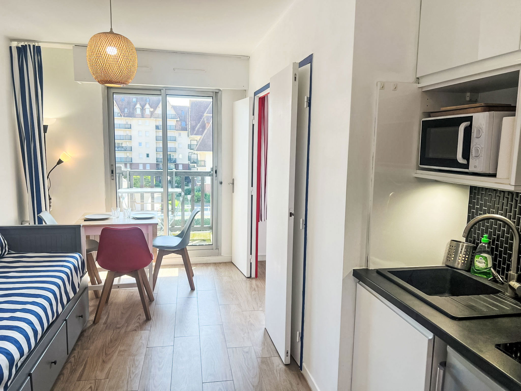 Residence "Les Normandières", 5 storeys. In the resort 2 km from the centre of Cabourg, 50 m from the sea, 50 m from the beach, direct access to the beach. For shared use: swimming pool angular heated, fenced (12 x 6 m, depth 80 - 180 cm, seasonal availability: 15.Jun. - 15.Sep. pool opening hours: 09:00-20:00) with internal staircase. Outdoor shower, tennis (1 x hard court). In the complex: lift. Parking (limited number of spaces) on the premises, public parking on the road. Shop 1 km, supermarket 800 m, restaurant 500 m, bus stop "Oasis" 600 m, thermal baths "Thalazur" 800 m. Golf course (18 hole) 1.2 km. Please note: Additional accommodations can be booked.