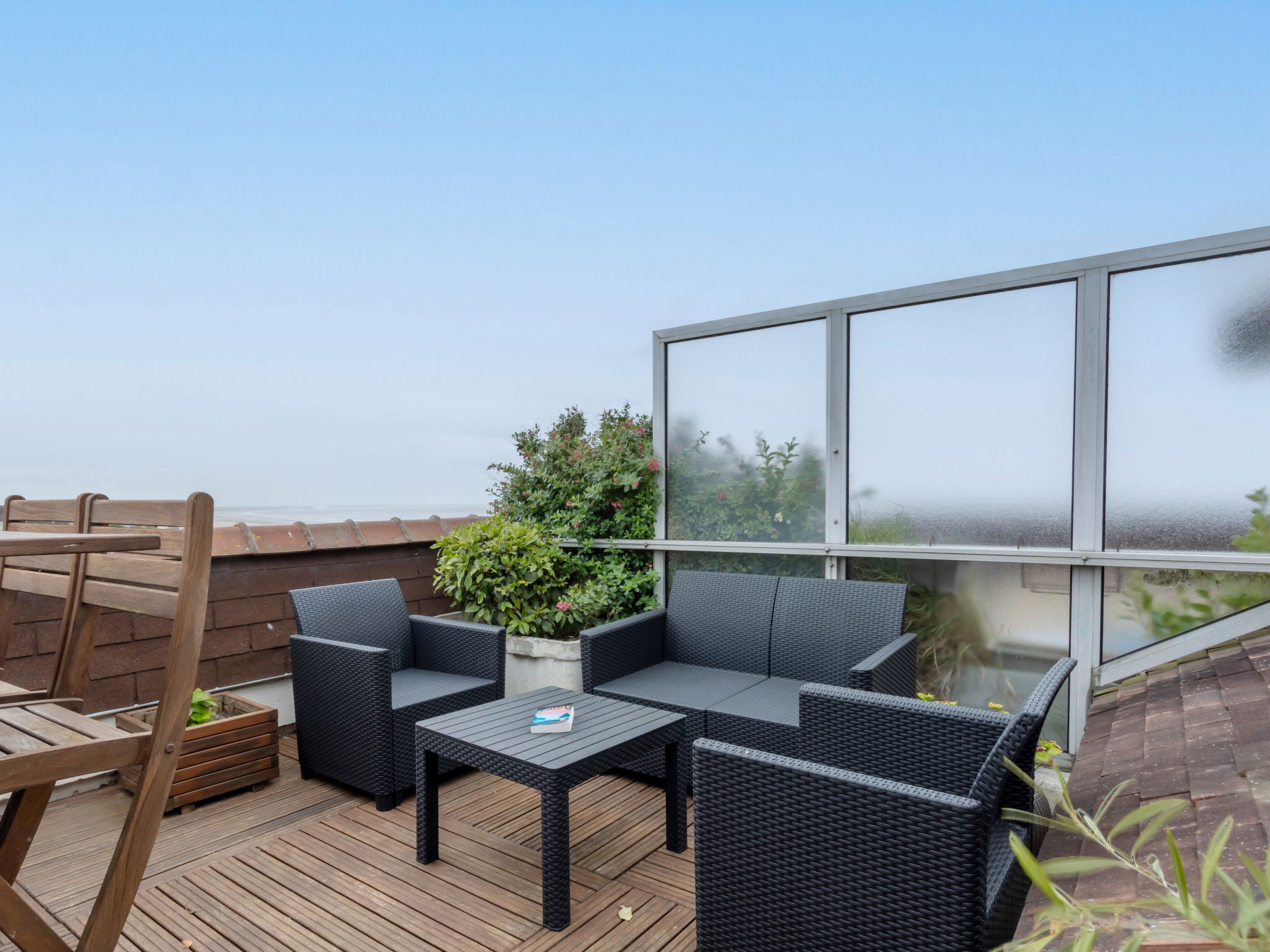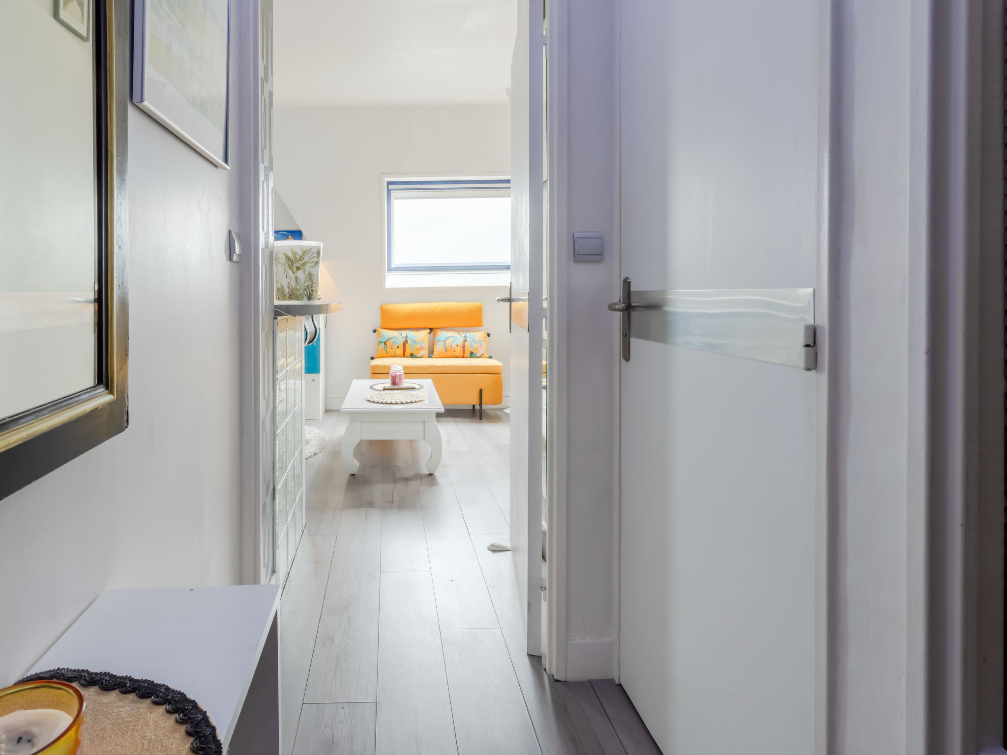 2-room apartment 34 m2 on 2 levels on 4th floor, south-west facing position. Living/dining room with 1 double sofabed (140 cm, length 190 cm), TV (flat screen), radio and CD-player. Open kitchen (dishwasher, 2 ceramic glass hob hotplates, freezer, electric coffee machine, Capsules for coffee machine (NESPRESSO) extra, combination microwave). Shower, sep. WC. Electric heating. Upper floor: (spiral staircase), 1 room with 1 french bed (140 cm, length 190 cm), TV (flat screen). Exit to the terrace, south-west facing position. Parquet floors. Terrace 16 m2, south-west facing position. Terrace furniture. Very beautiful view of the sea. Facilities: Internet (WiFi, extra). Parking space n 25 (roofed). Please note: smoke alarm. Terrace accessible only from the upstairs bedroom. Residential construction work 50 meters away. Offer by a private individual according to Art. 155, IV of CGI.