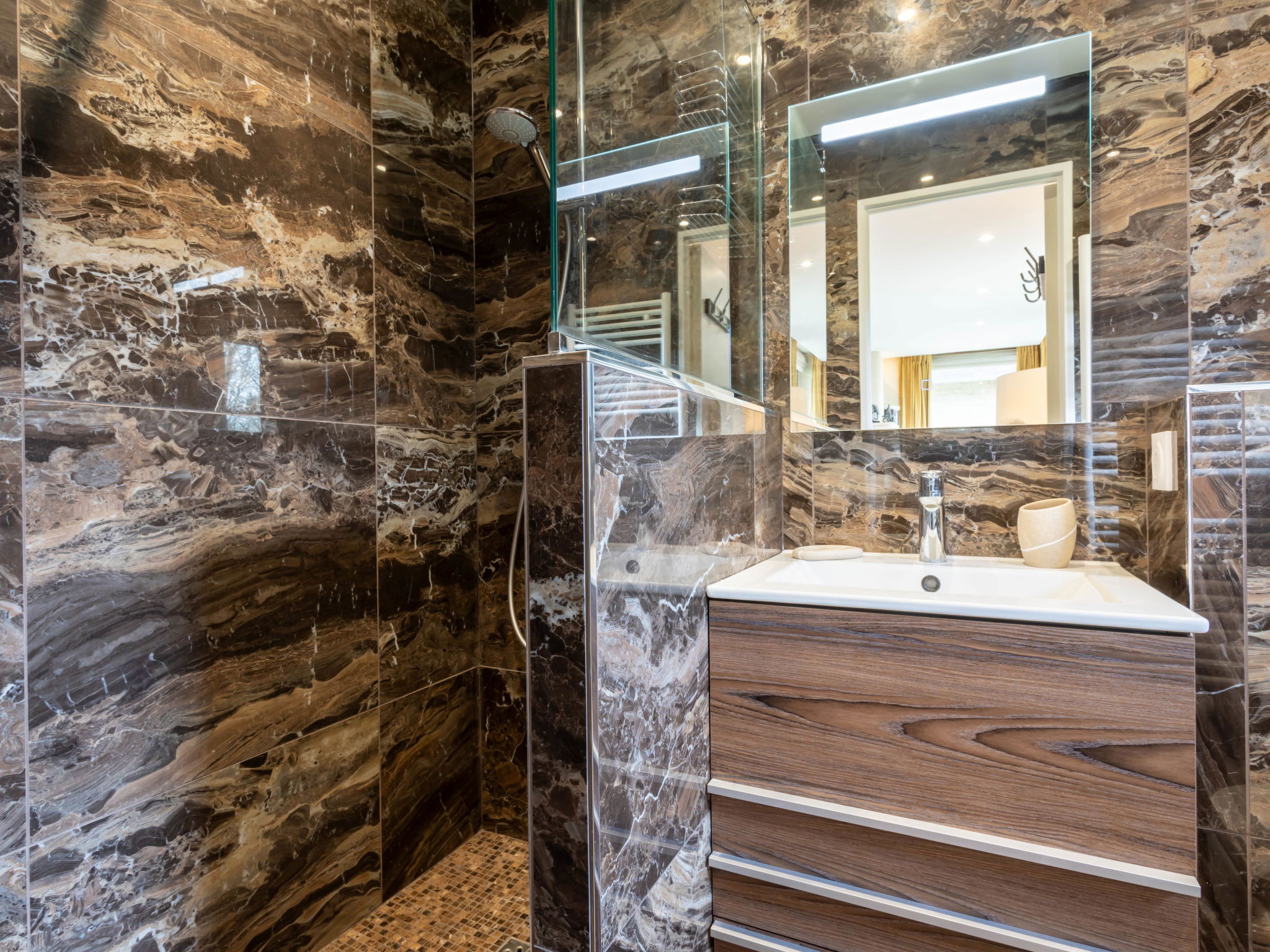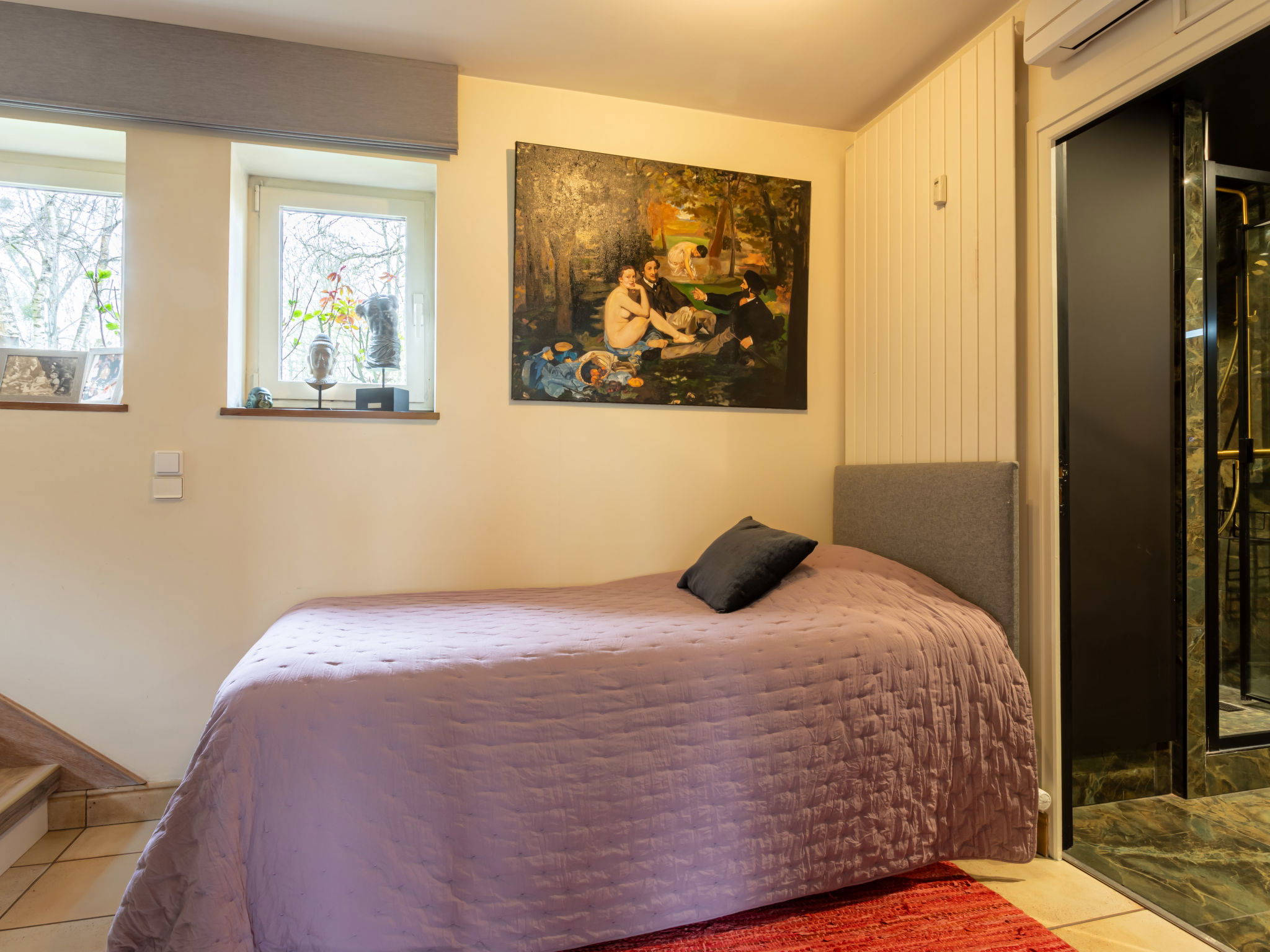 4-room maisonette 75 m2 on 1st floor. Object suitable for 4 adults + 1 child. Comfortable furnishings: entrance hall. Living/dining room with open-hearth fireplace (only for decoration), TV (flat screen). Exit to the balcony. Open kitchen (oven, dishwasher, 4 ceramic glass hob hotplates, toaster, kettle, electric coffee machine). Shower/WC. On the lower ground floor: walk-through room with 1 sleeping facility (1 x 90 cm, length 190 cm). 1 room with 1 french bed (1 x 140 cm, length 190 cm), TV (flat screen). Exit to the garden. 1 room with 1 french bed (1 x 140 cm, length 190 cm), TV (flat screen). Bath/WC. Electric heating. Terrace roofed. Deck chairs (2). View of the garden. Facilities: washing machine, iron, hair dryer. Internet (WiFi, free). Reserved parking. Please note: non-smokers only. Smoke alarm, no lift. Attention: the fireplace visible on the photos is not usable. 14701MAppartement02305