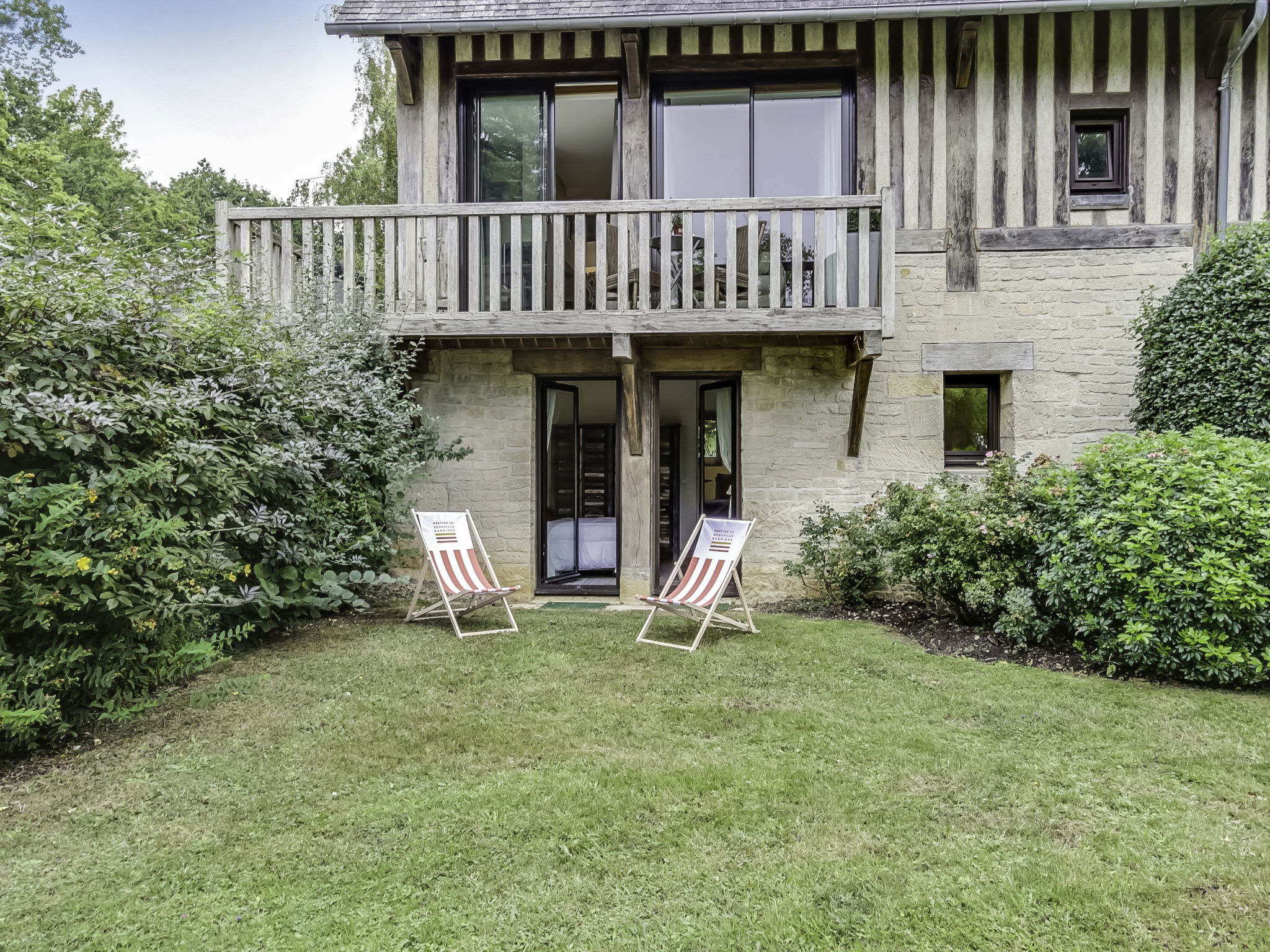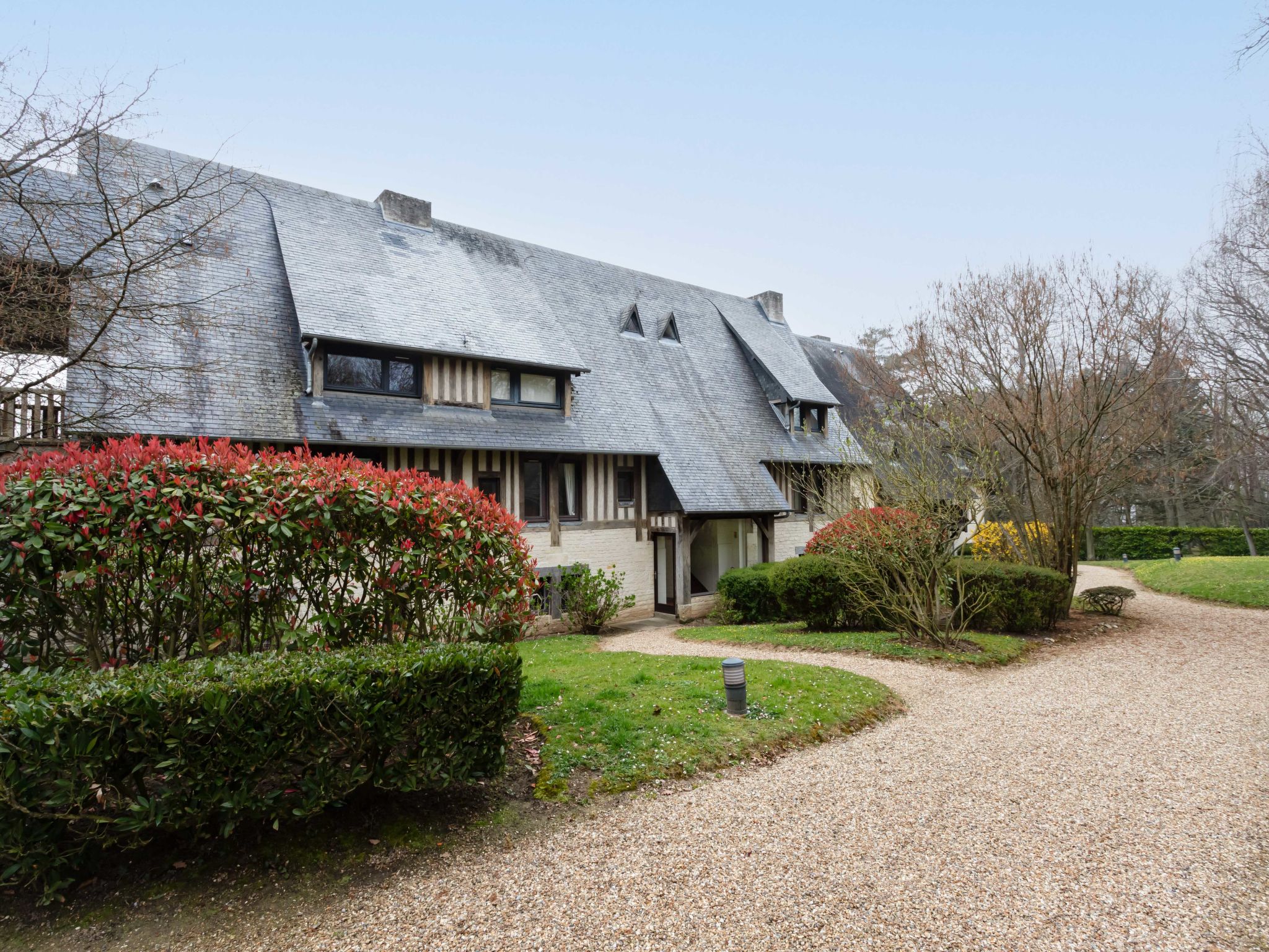 Deauville Tourgéville: Farm estate "Les Hauts de Deauville", 3 storeys. On the outskirts, in the residential district, 3 km from the sea, in the countryside, on the golf course. For shared use: park, parking at the house. Grocery 750 m, supermarket 3.1 km, restaurant 2.9 km, railway station "de Deauville Trouville" 3.6 km, sandy beach "de Deauville" 3 km, indoor swimming pool 3.1 km, thermal baths "Thalasso de Deauville" 3.1 km. Golf course (27 hole) 3.5 km, riding stable 3.3 km. Nearby attractions: hippodrome de Deauville Clairefontaine 1.9 km, casino de Deauville 2.9 km, Honfleur village authentique 19 km, Mémorial de Caen 44 km, Plages du débarquement d'Arromanches 75 km. The keys‘ handover takes place by the agency in Deauville.