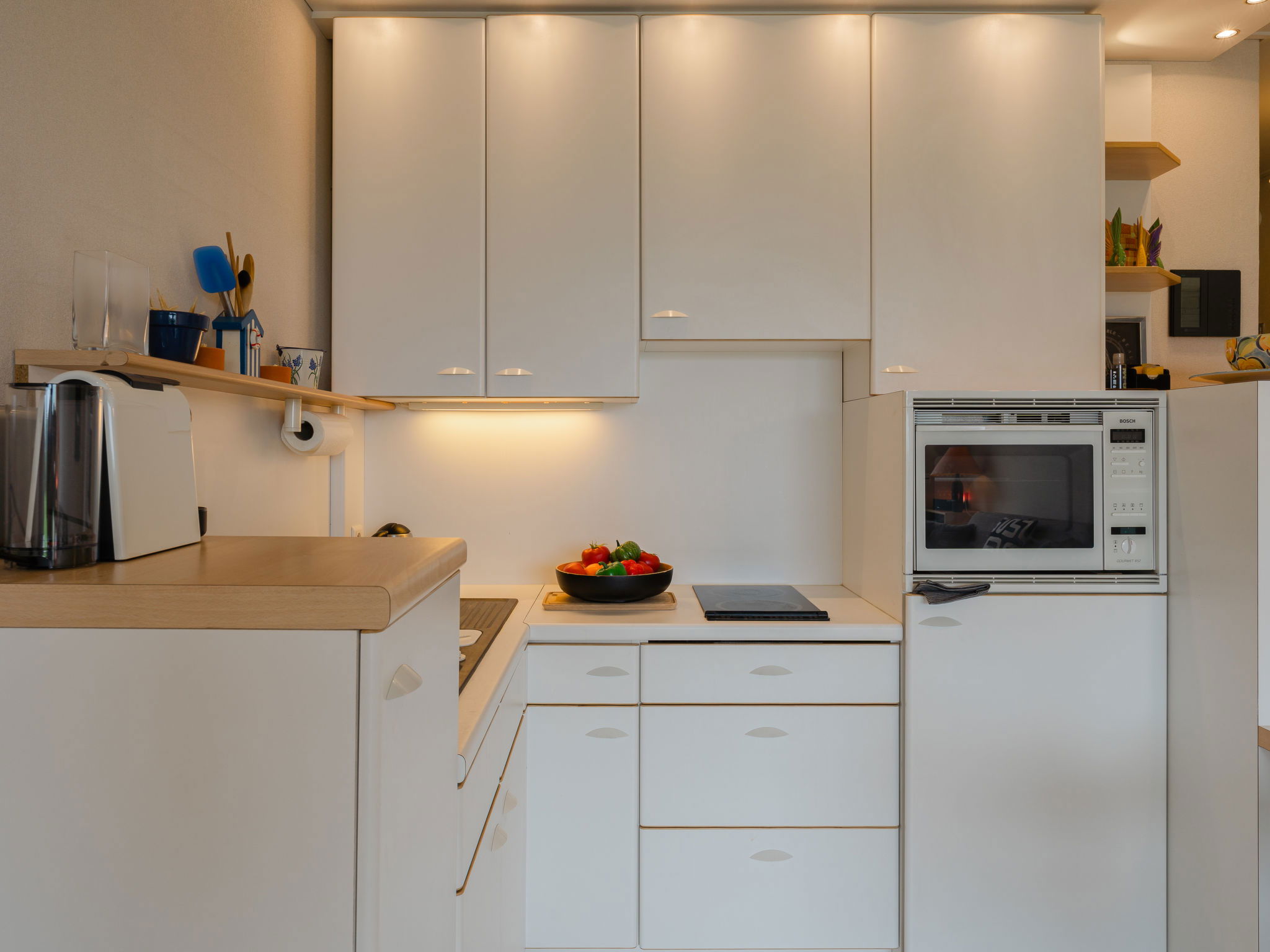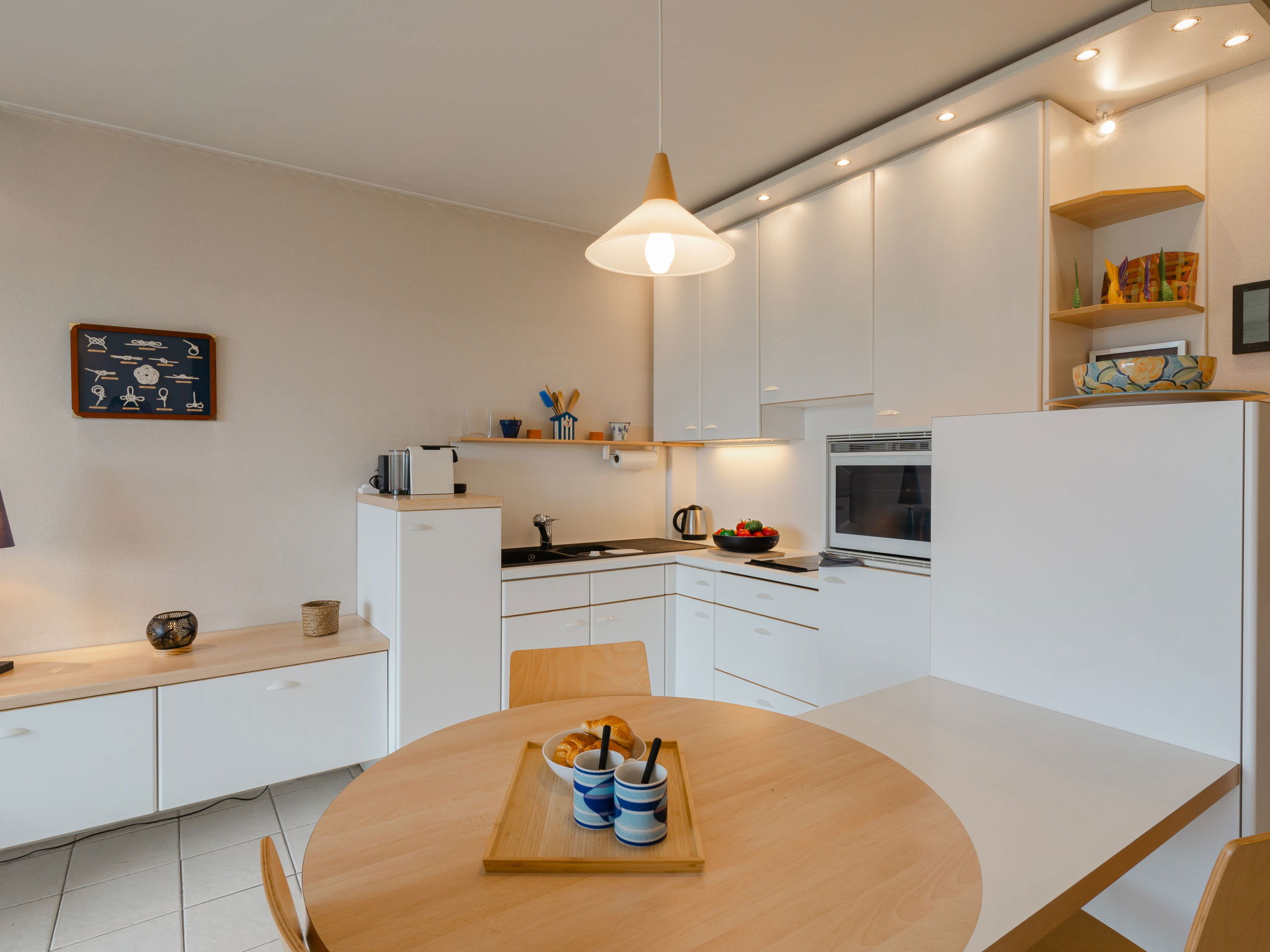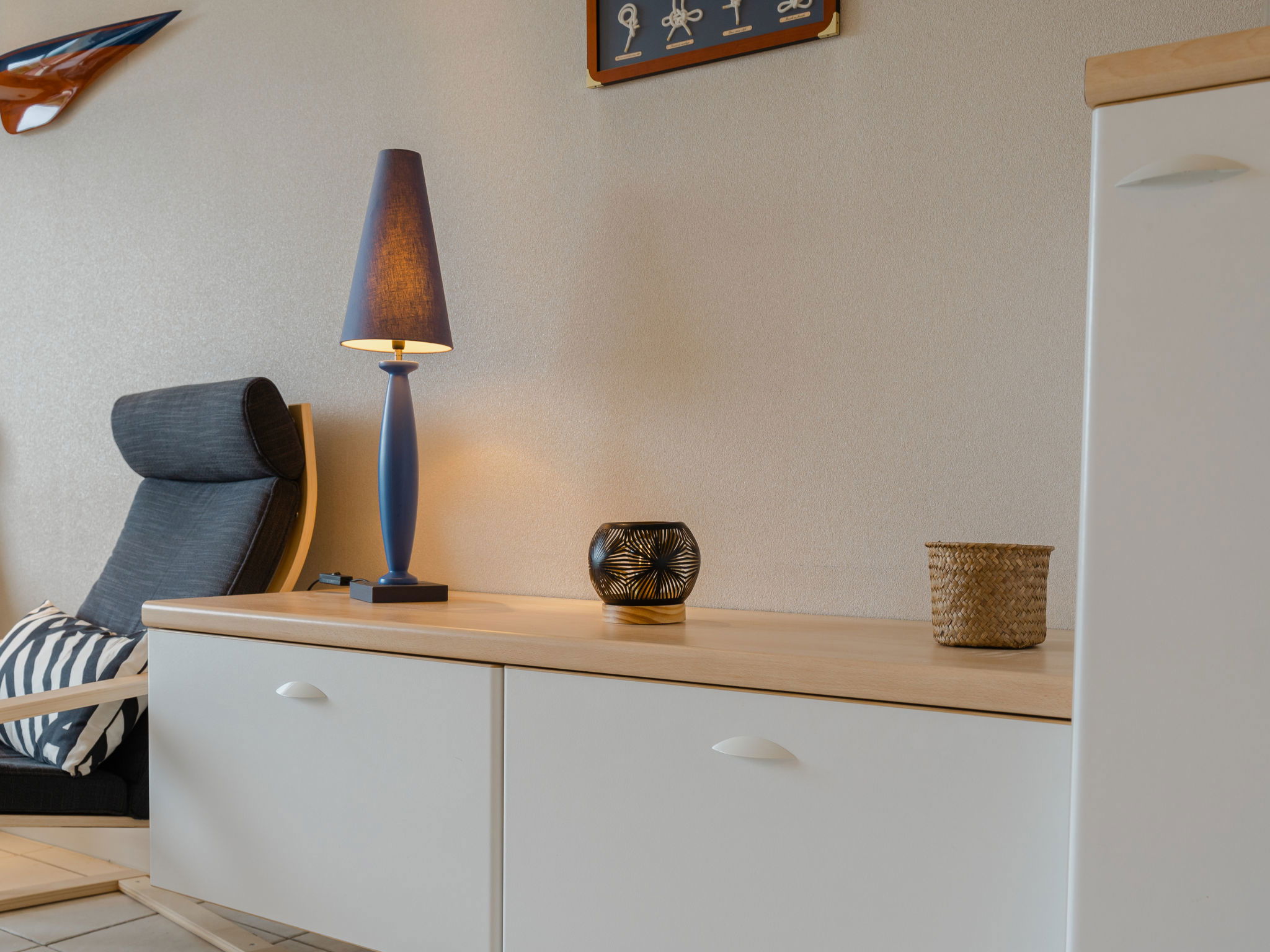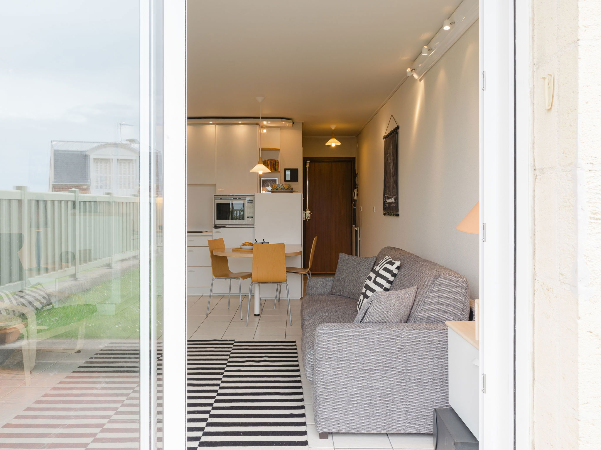 "Le Drakkar", 1-room studio 28 m2, on the ground floor, west facing position. Object suitable for 2 adults. Living/sleeping room 28 m2 with panoramic window west facing position with 1 double sofabed (1 x 160 cm, length 200 cm), TV (flat screen), heating stove. Exit to the patio, west facing position. Open kitchen (2 hot plates, mini-oven, toaster, kettle, electric coffee machine). Shower/WC. Gas heating. Terrace furniture. Distant view of the sea. Facilities: Internet (WiFi, extra). Please note: apartment courtyard side. Non-smokers only, no parking. 1 pet/ dog allowed. Smoke alarm. Offer by a private individual according to Art. 155, IV of CGI.