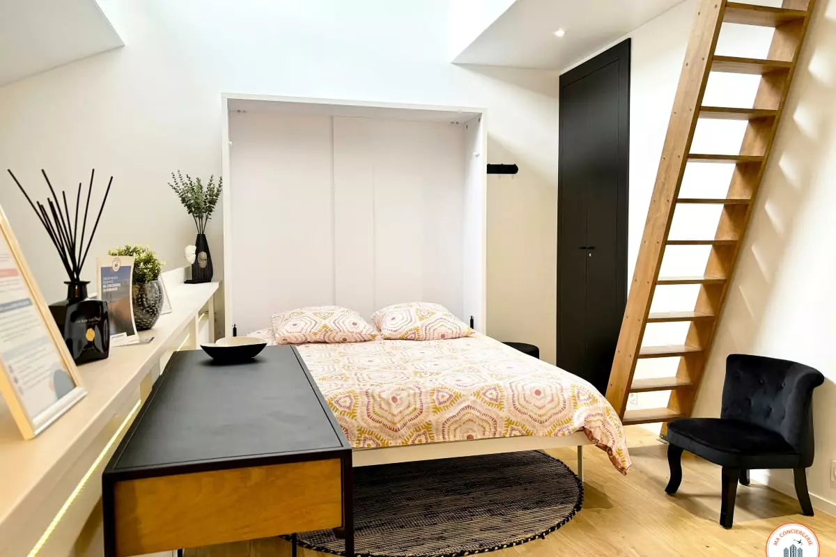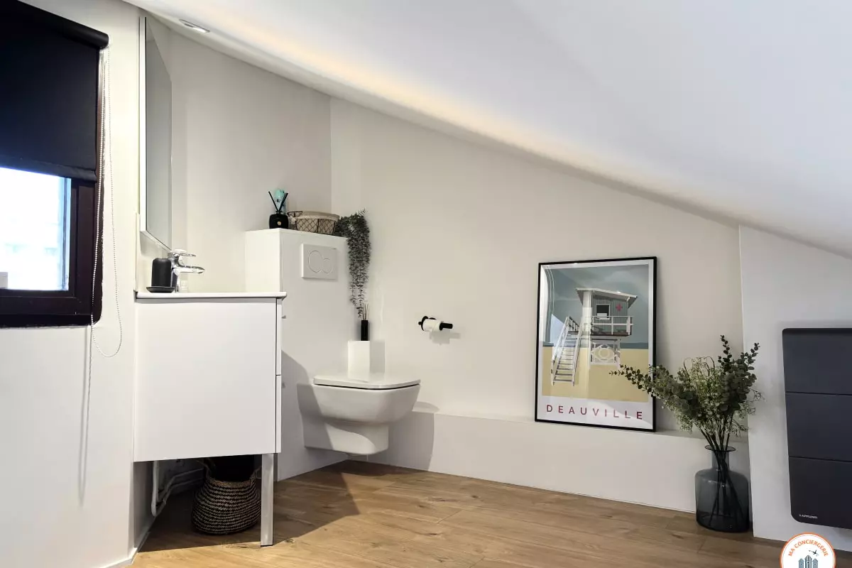 - An attic bedroom equipped with a queen-size bed (160x200cm), as well as a bathroom. Please note that access is via a slightly steep staircase.