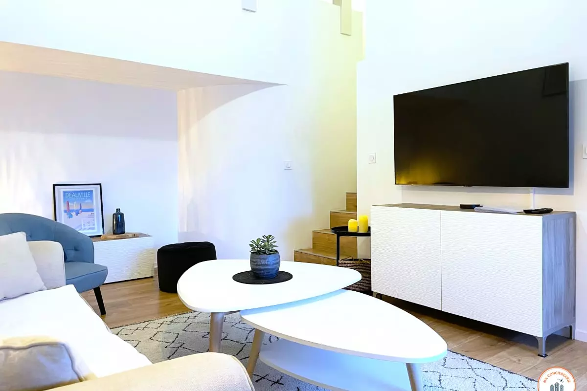 Our apartment is located in the heart of Deauville's marinas. It's just 5 minutes from the beach, shops, and Place Morny, and a 10-minute walk from the train station and casino.