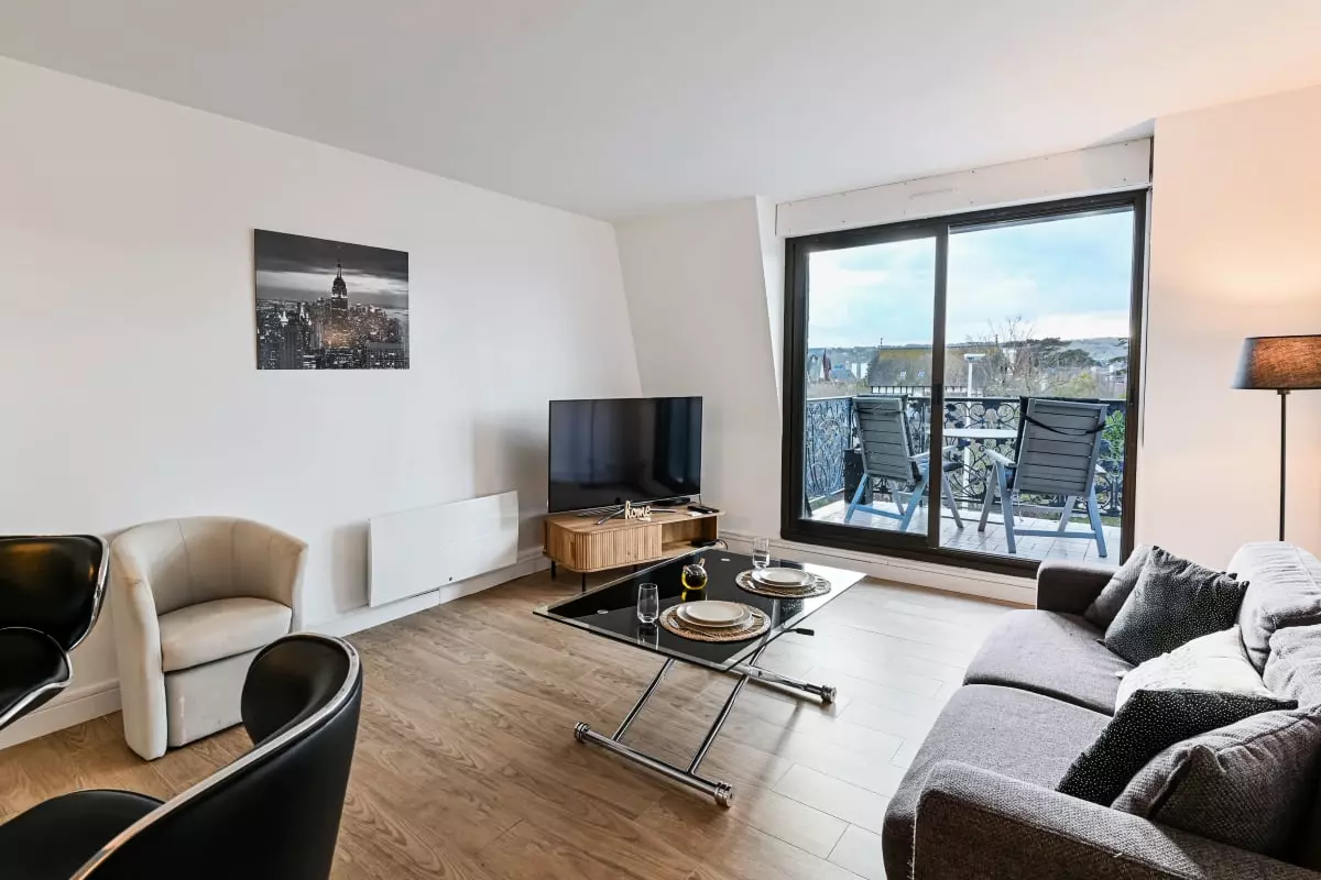 ArrayIt is modern and bright, with panoramic views stretching from Saint-Augustin church to the beach, passing by the Norman rooftops and Mont Canésien.