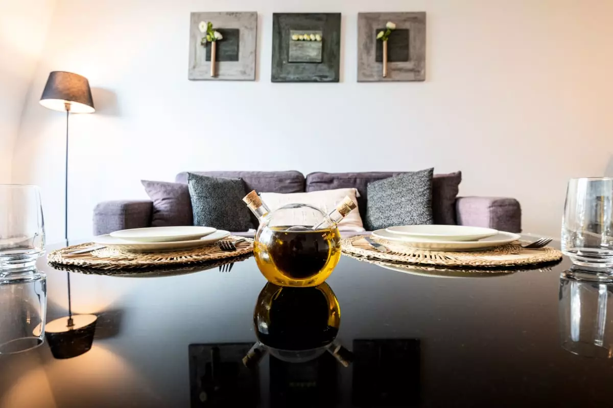 The bedroom is equipped with a comfortable 160*190 bed, while the living room has a 140*200 sofa bed for peaceful nights after a day of exploring.