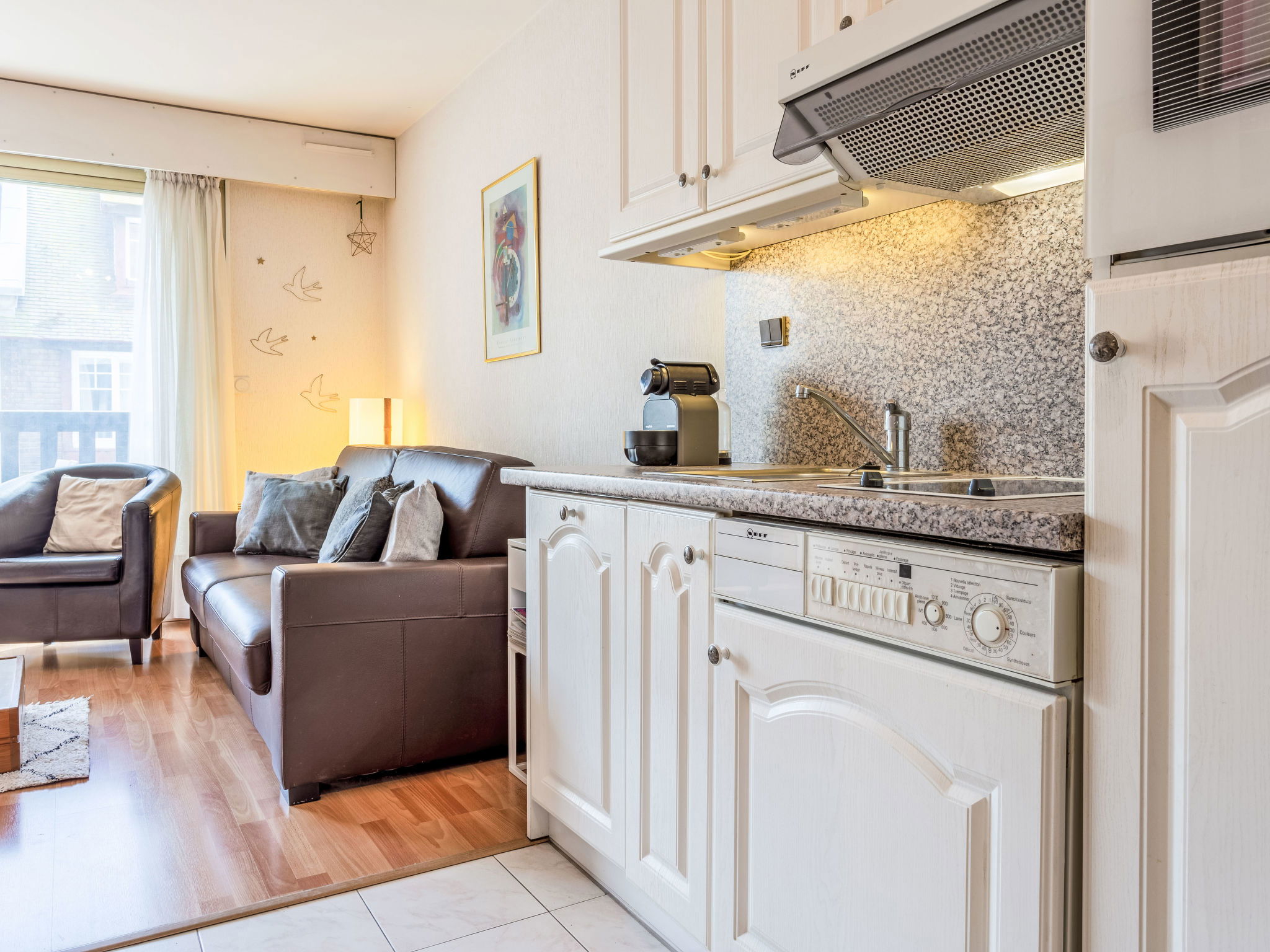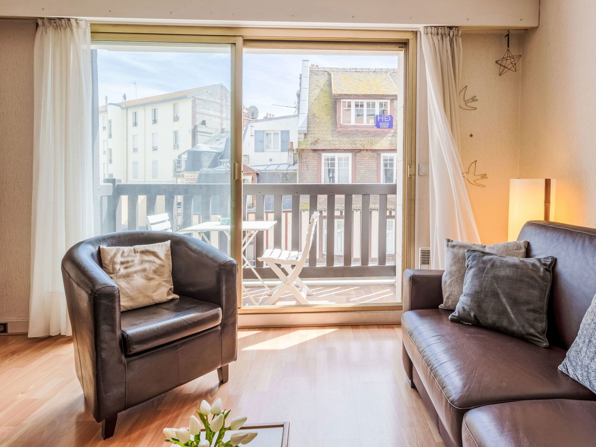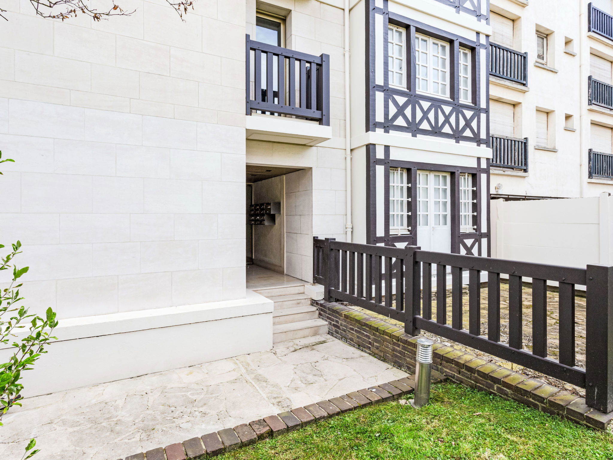 Deauville: Residence "Castel Saint Clair", 4 storeys. In the resort, residential area (villas), excellent location: right in the centre but still quiet, in the heart of the city, from the sea, 500 m from the beach. For shared use: well-kept garden (fenced) lawn and plants. In the complex: lift. (4 steps). Shop 200 m, grocery, supermarket 450 m, restaurant 130 m, bakery 400 m, pedestrian zone 200 m, bus stop 500 m, railway station "de Deauville Trouville" 850 m, thermal baths "thalasso de Deauville" 550 m. Golf course (18 hole) 3.3 km, minigolf 450 m, riding stable 450 m. Nearby attractions: Hippodrome Deauville La touques 600 m, Casino de Deauville 350 m, CID centre international Deauville 600 m, Honfleur village normand 17 km, Memorial de Caen 54 km, Plages du débarquement Arromanches 85 km. The keys‘ handover takes place by the agency in Deauville.