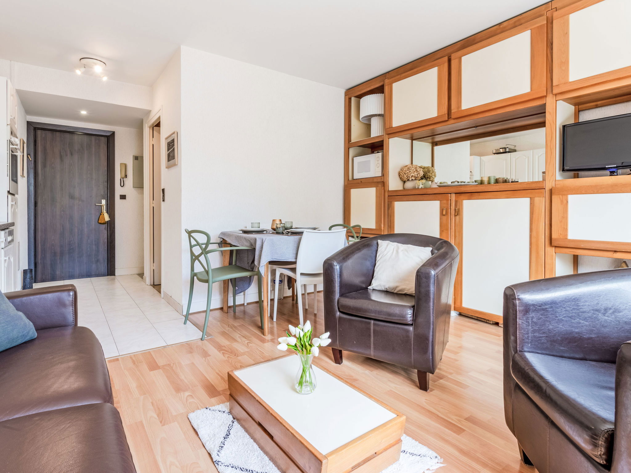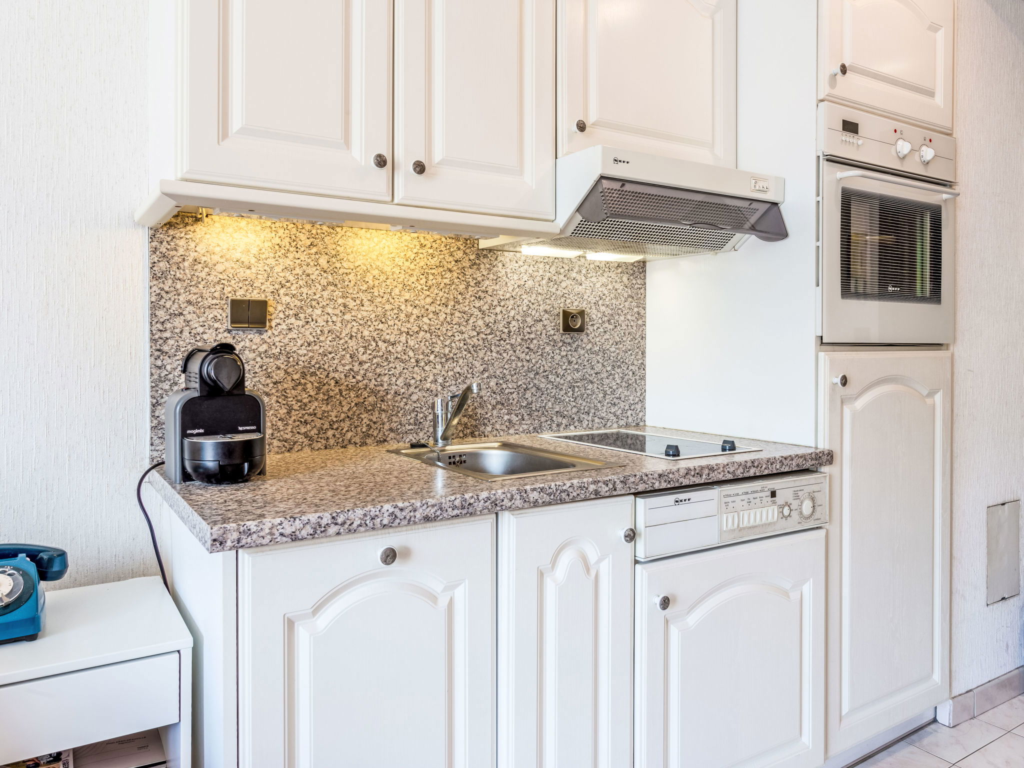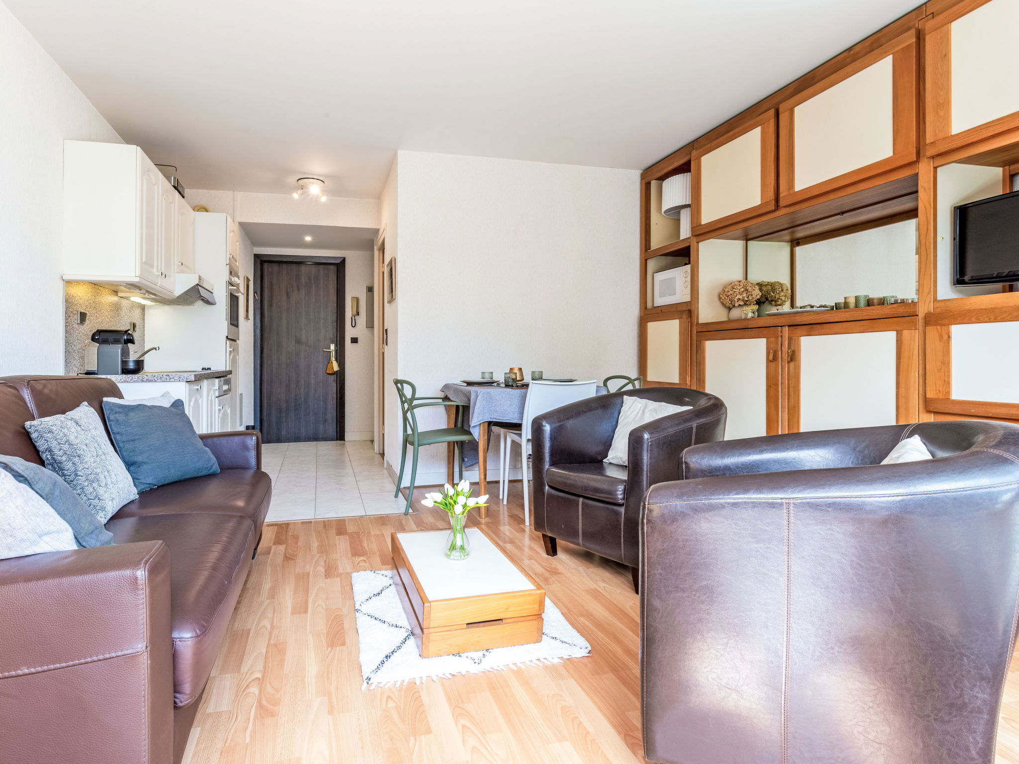 "Castel St Clair", 1-room studio 27 m2 on 2nd floor, south-east facing position. Large living/dining room with 1 sofabed (140 cm, length 190 cm), TV (flat screen). Exit to the balcony, south facing position and east facing position. 1 small room with 1 bed (90 cm, length 190 cm). Open kitchen (oven, 2 ceramic glass hob hotplates, toaster, kettle, microwave, electric coffee machine). Bath/shower/WC. Electric heating. Small balcony 3 m2. View of the town. Facilities: Internet (WiFi, extra). Parking (roofed, fenced). Please note: non-smokers only. 1 small pet/ dog allowed. Smoke alarm. Offer by a private individual according to Art. 155, IV of CGI. 14220001950HQ