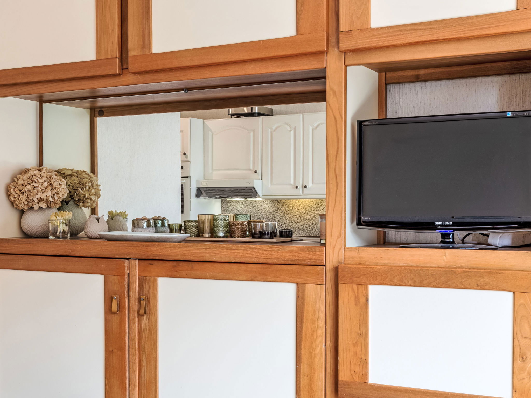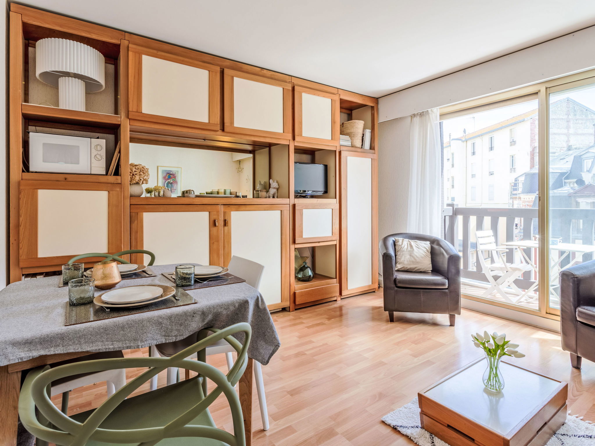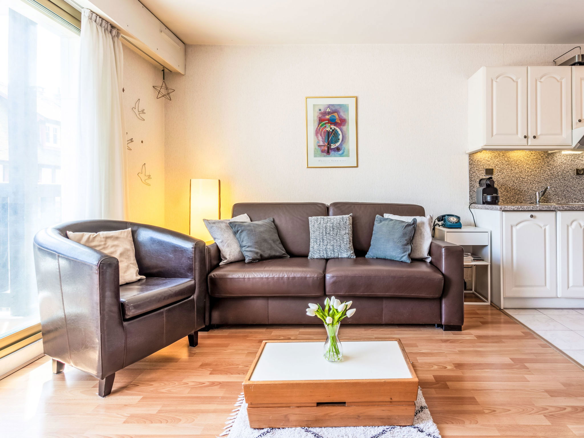 "Castel St Clair", 1-room studio 27 m2 on 2nd floor, south-east facing position. Large living/dining room with 1 sofabed (140 cm, length 190 cm), TV (flat screen). Exit to the balcony, south facing position and east facing position. 1 small room with 1 bed (90 cm, length 190 cm). Open kitchen (oven, 2 ceramic glass hob hotplates, toaster, kettle, microwave, electric coffee machine). Bath/shower/WC. Electric heating. Small balcony 3 m2. View of the town. Facilities: Internet (WiFi, extra). Parking (roofed, fenced). Please note: non-smokers only. 1 small pet/ dog allowed. Smoke alarm. Offer by a private individual according to Art. 155, IV of CGI. 14220001950HQ