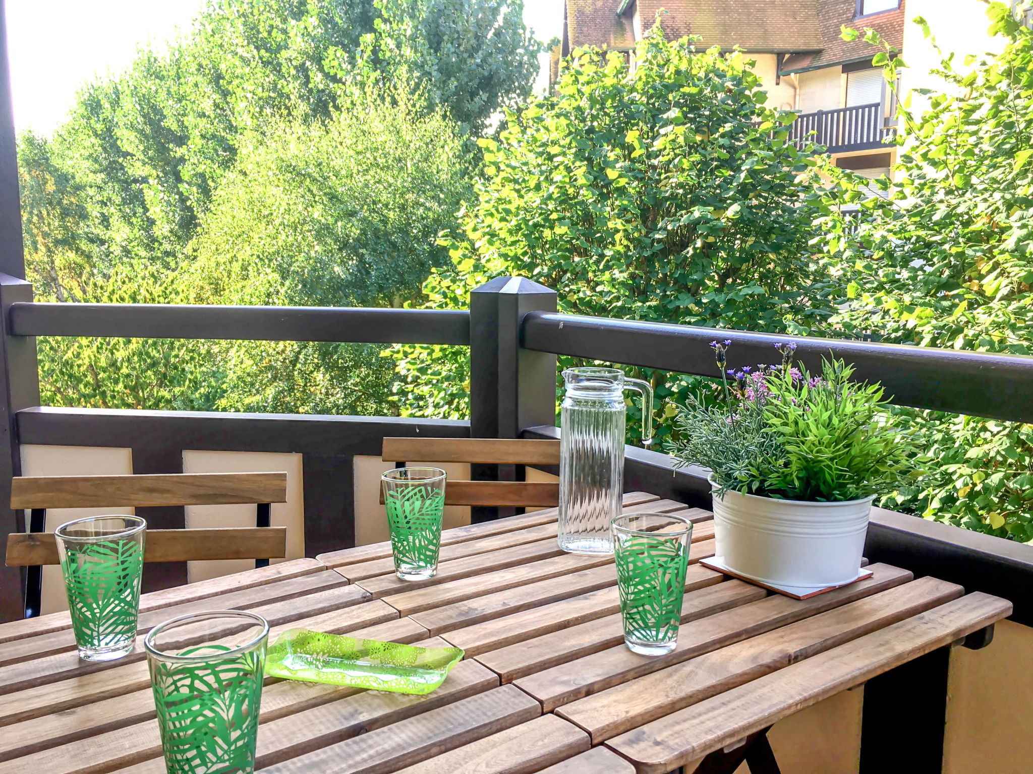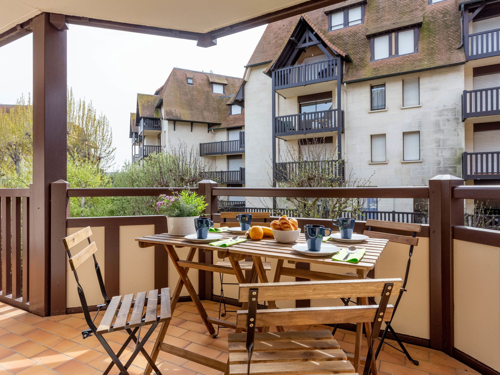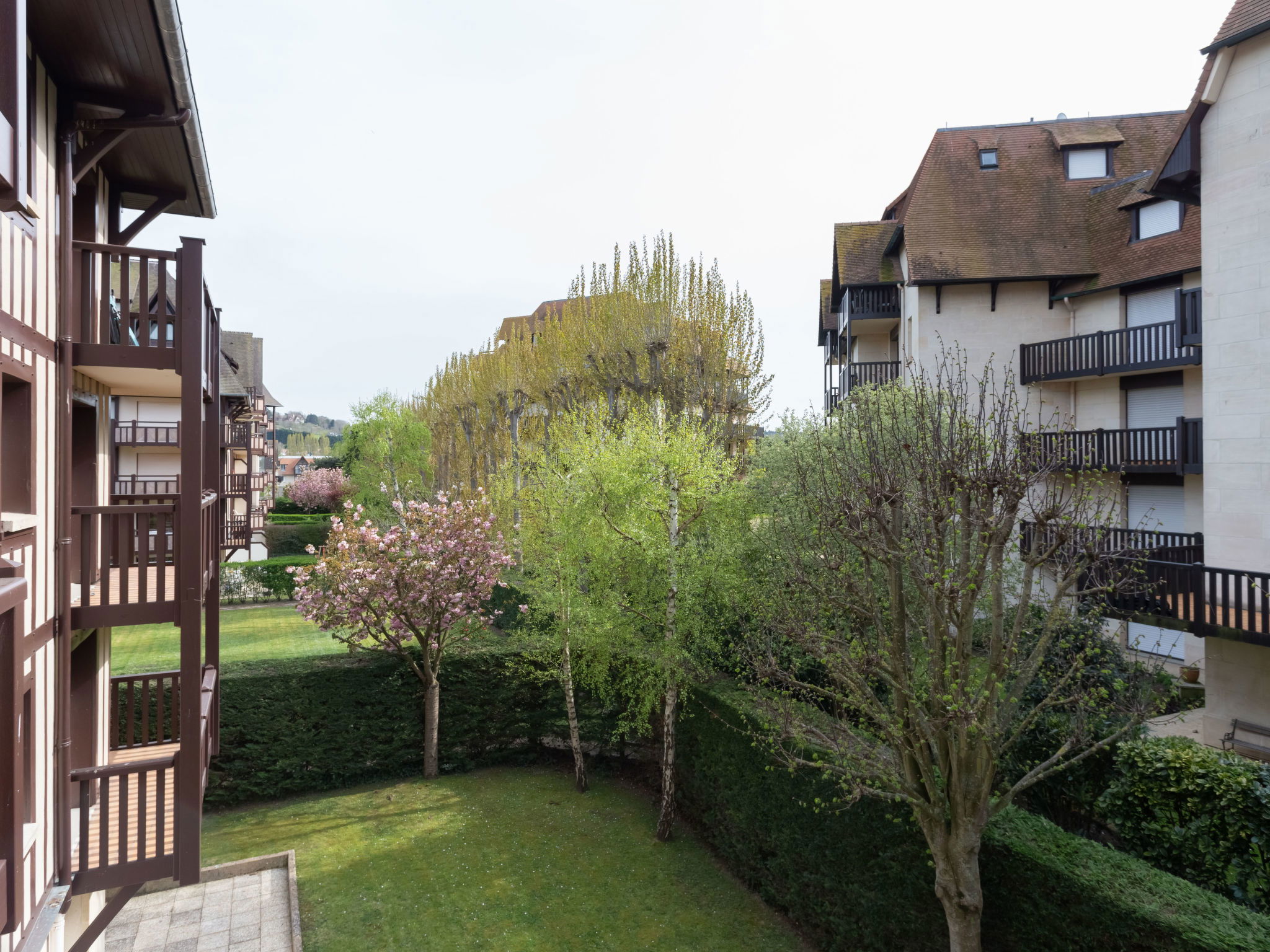 Deauville: Beautiful residence "Le Fairway", surrounded by trees. On the outskirts, 1.5 km from the centre, in the residential district, 400 m from the sea, 400 m from the beach, in a cul-de-sac. In the complex: lift. Shop 900 m, grocery, supermarket 300 m, restaurant 900 m, bus stop "1 rue de gheest" 300 m, railway station "Deauville-Trouville" 2 km, indoor swimming pool 950 m, thermal baths "Deauville" 950 m. Golf course (18 hole) 3.6 km, tennis 1.3 km, riding stable 1.3 km. Nearby attractions: Hippodrome de Clairefontaine 1.6 km, Centre International Deauville - CID 1.2 km, Mémorial de Caen 52 km, Plages du Débarquement d'Arromanches 79 km. Please note: the keys‘ handover takes place by the agency in Deauville. Additional accommodations can be booked.