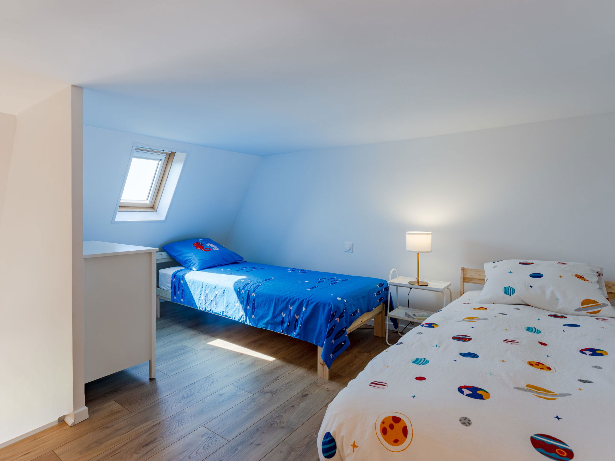 2-room apartment 25 m2 on 2 levels, south-west facing position. Living/dining room with TV (flat screen). Exit to the balcony. 1 room with 1 french bed (160 cm, length 200 cm). Kitchenette (dishwasher, 4 induction hot plates, toaster, kettle, electric coffee machine, Capsules for coffee machine (Nespresso) extra, combination microwave). Shower, sep. WC. Electric heating. Upper floor: (steep stair), 1 open room, ceiling height 170 cm with 2 beds (90 cm, length 200 cm). Small balcony 1 m2, south facing position and west facing position. Side view of the sea. Facilities: washing machine, iron, hair dryer. Internet (WiFi, free). Parking space n 215. Please note: smoke alarm. Upstairs the open bedroom measures 20m². Offer by a private individual according to Art. 155, IV of CGI. 146406446293A