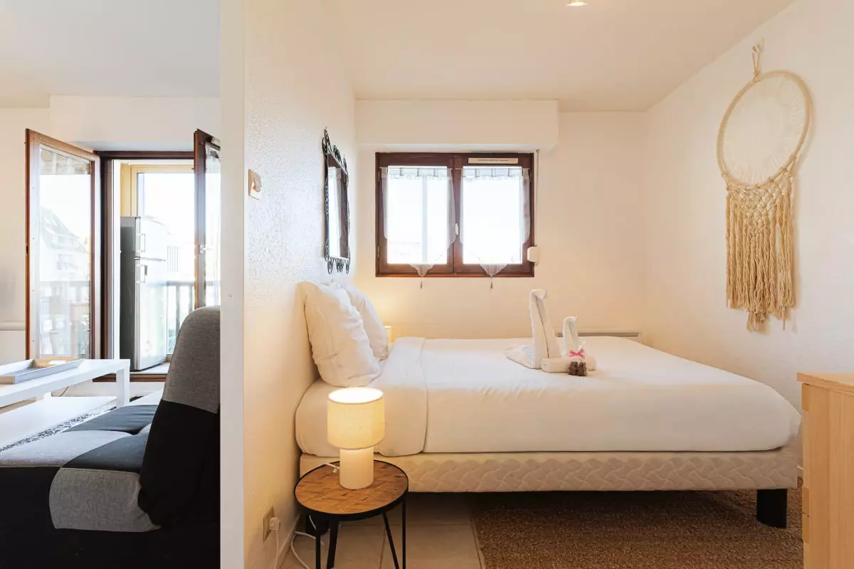 The location is ideal for exploring the resort, as you'll be just steps away from restaurants, the casino with its mini-golf course, and the renowned Paléospace museum. The natural beach stretches for over two kilometers, while the impressive Black Cow Cliffs and thirty hectares of marshland await you for walks or bike rides.