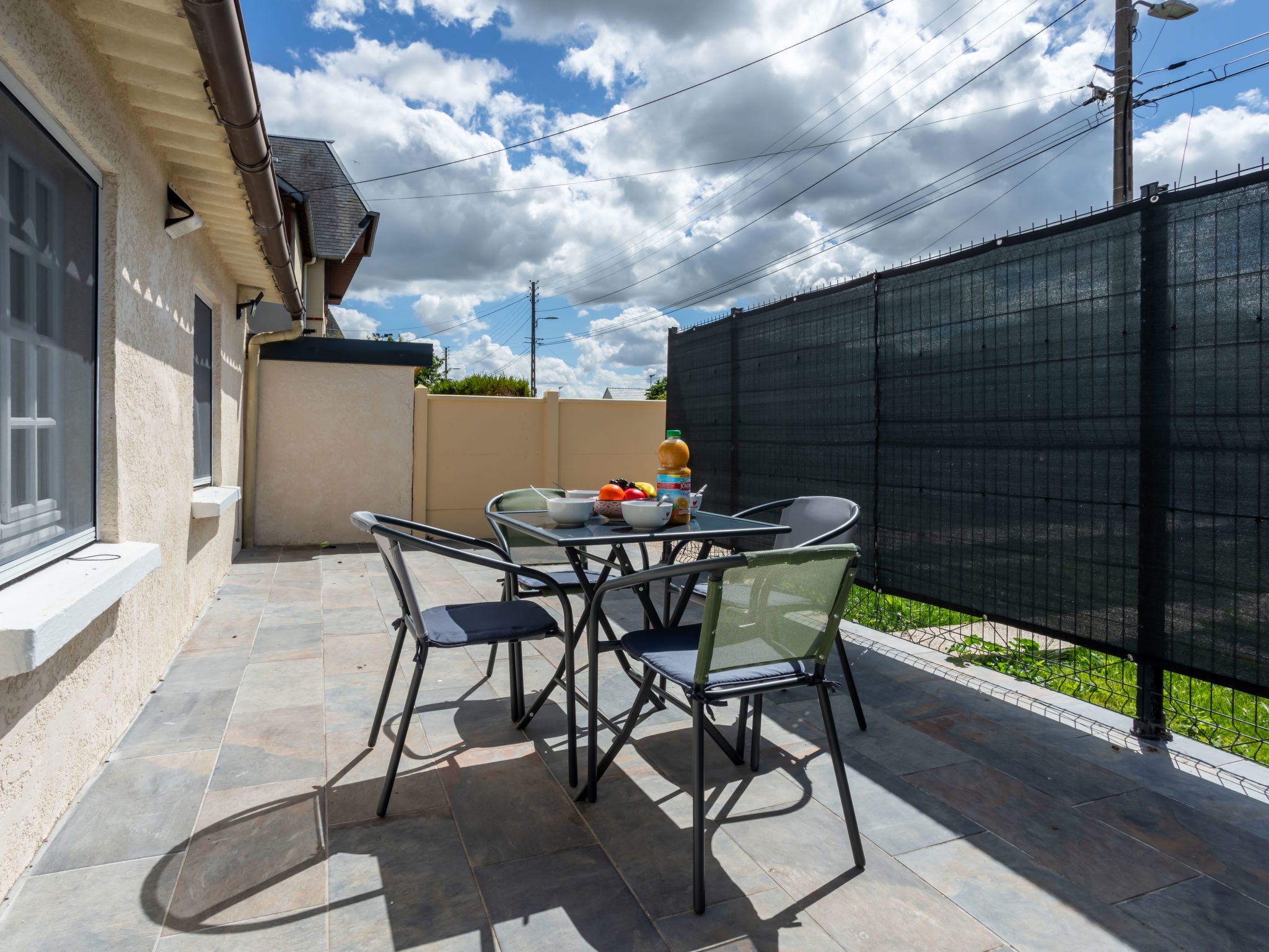 Small terraced house "Jade". On the outskirts, 900 m from the centre of Village Guillaume le Conquérant, traffic calmed area, 2 km from the sea, 2 km from the beach. Public parking on the road. Shop, supermarket 350 m, restaurant, bar, bakery 300 m, 15 minute walk to the centre, bus stop "Gare SNCF" 450 m, sandy beach "Cabourg" 2 km.