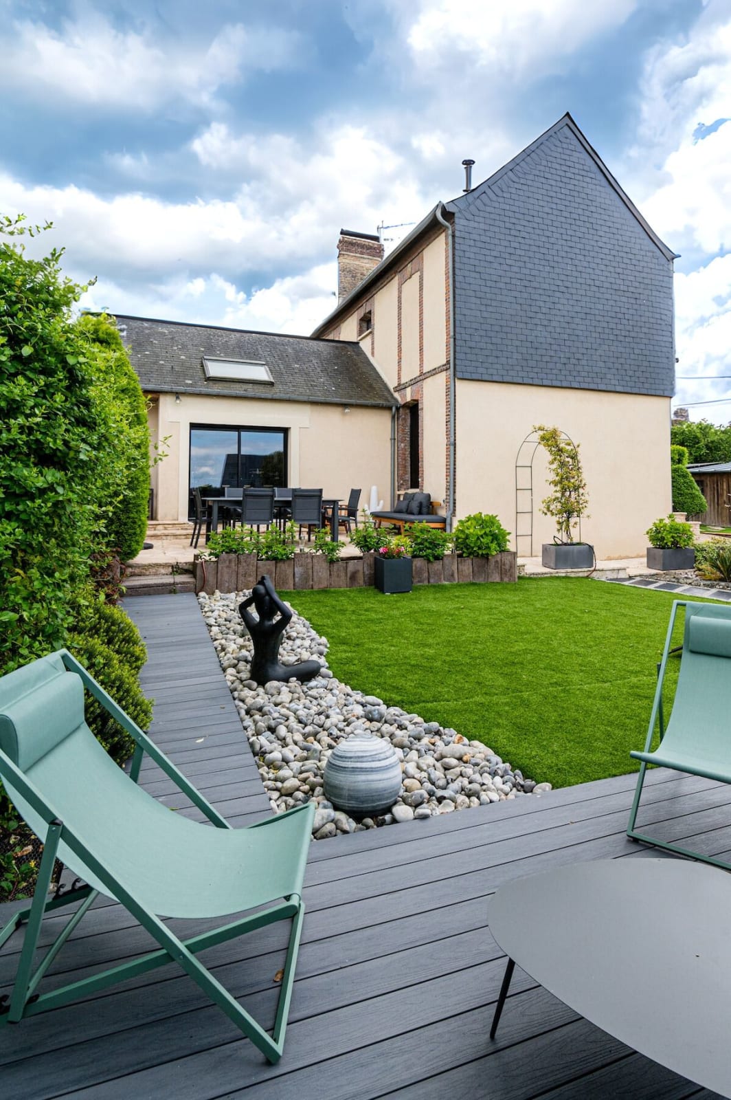After your day out, relax in the 300 m² garden or on the 18 m² sunny terrace with stunning views over the estuary and the Pont de Normandie.