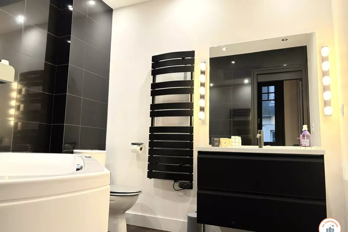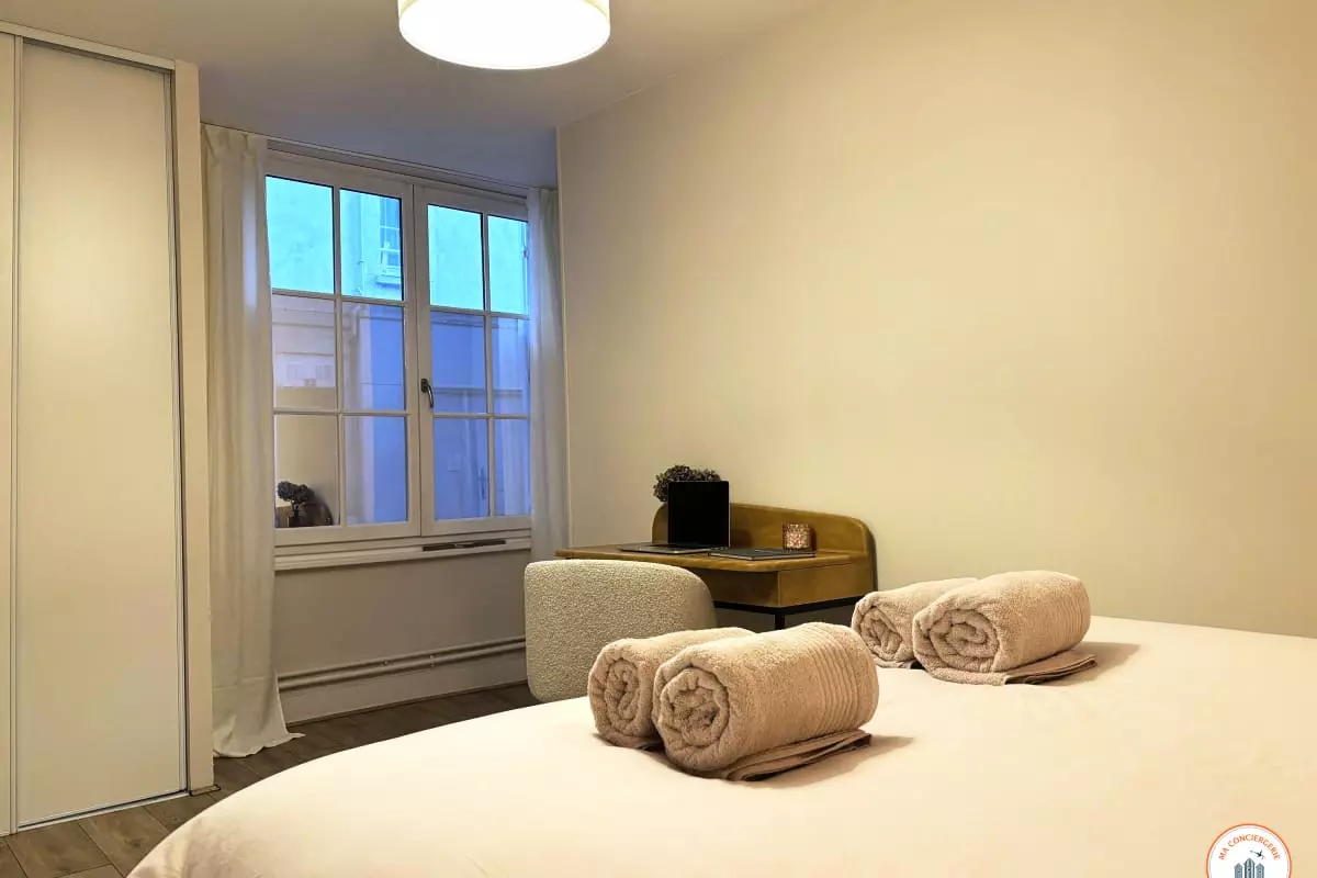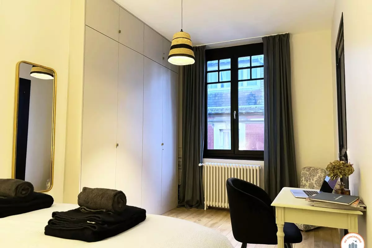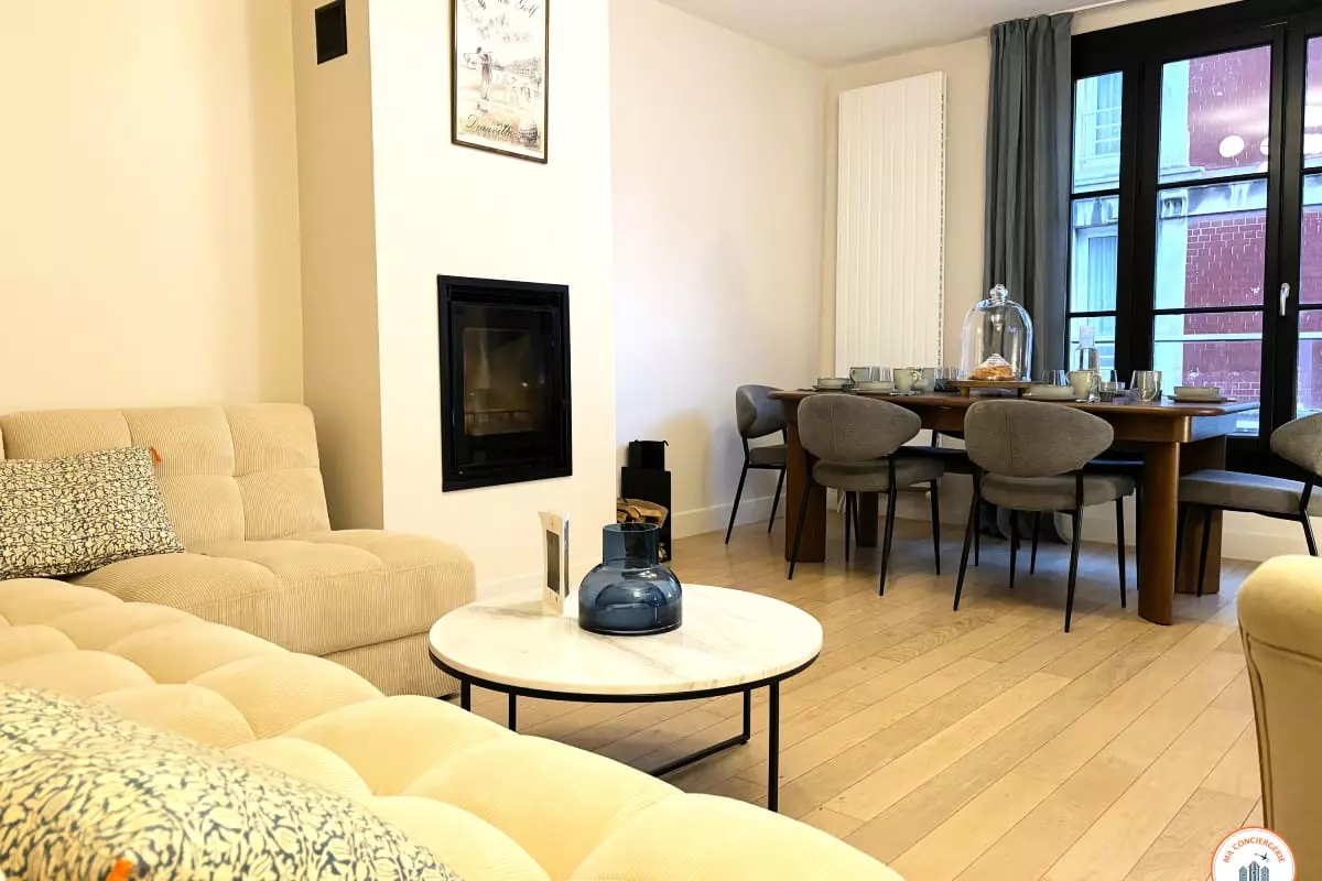 Completely renovated and equipped with luxury furniture, we offer you a stay in a bright house, ideally located and quiet despite its location near the famous pedestrian street "la rue des bains". You will immediately be seduced by the sobriety of its decoration, its geographical location and its proximity to shops (at the foot of the accommodation), the beach (150m), the casino (200m), the fish market (100m) and 15 minutes walk from the Deauville-Trouville SNCF train station.