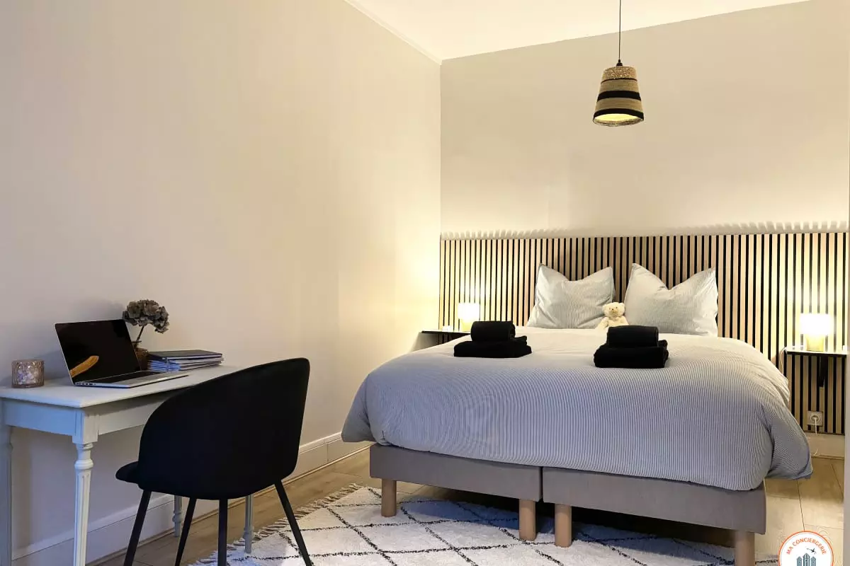 - a bedroom equipped with new Queen Size bedding 160x200cm with closet and desk for those who like to work from home;