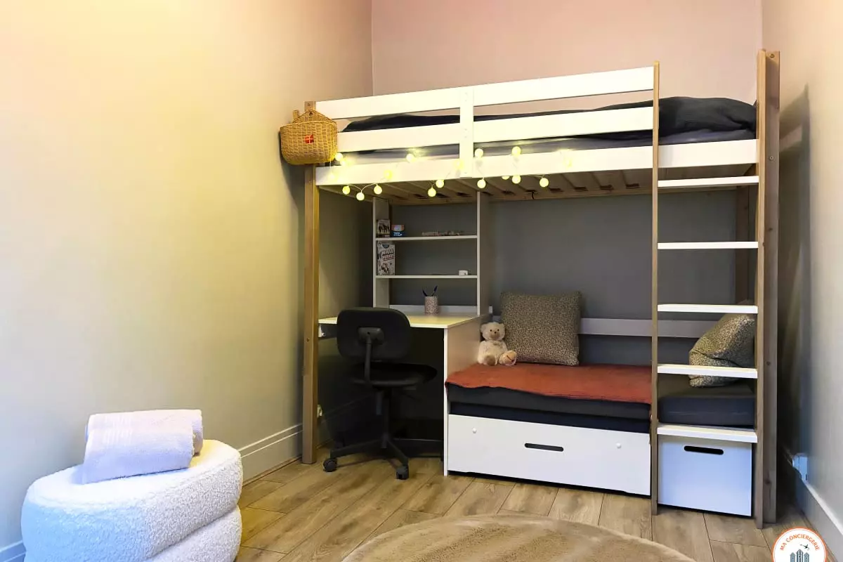 - 1 children's bedroom equipped with a 90x200cm bunk bed;